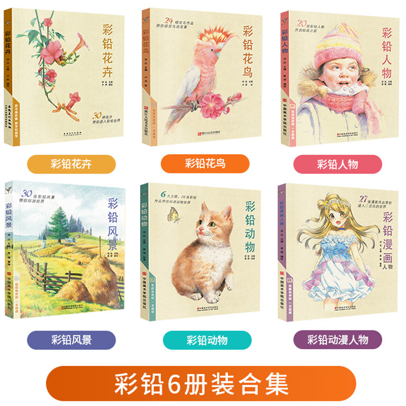 彩鉛畫合集6冊 彩色鉛筆 風景+花卉+漫畫+人物+動物+花鳥 塗色手繪基礎入門教程 基美術繪畫超寫實填色 動漫卡通臨摹畫冊