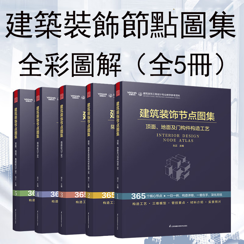 建築裝飾節點圖集( 全5冊 全彩圖解)牆面 牆地收口工藝 隔牆、牆面及踢腳線構件構造工藝 頂面、牆頂、地面收口工藝 頂面 地面及門構件構造工藝 節點圖集