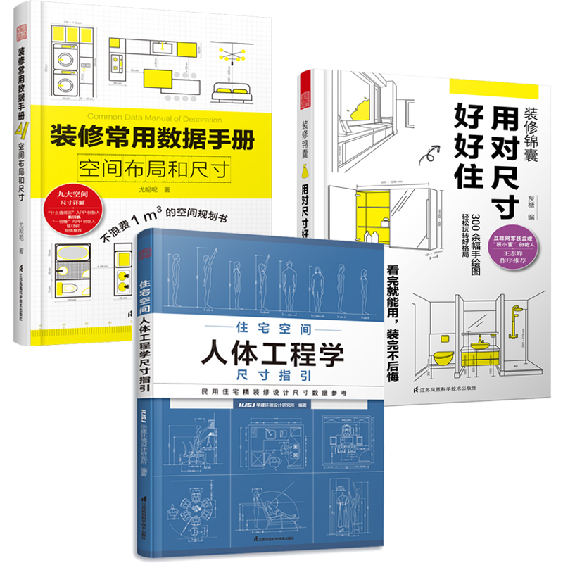 【住宅空間人體工程學尺寸指引 】+【裝修常用數據手冊:空間佈局和尺寸】+【裝修錦囊 用對尺寸好好住】3冊