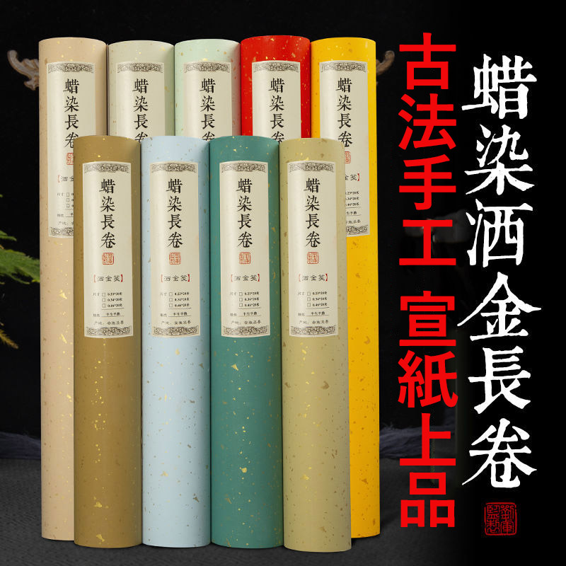 • 復古宣紙蠟染灑金鎏金長卷 半生熟 書法專用彩色仿古小楷抄經作品紙 NT$1380 詳情
