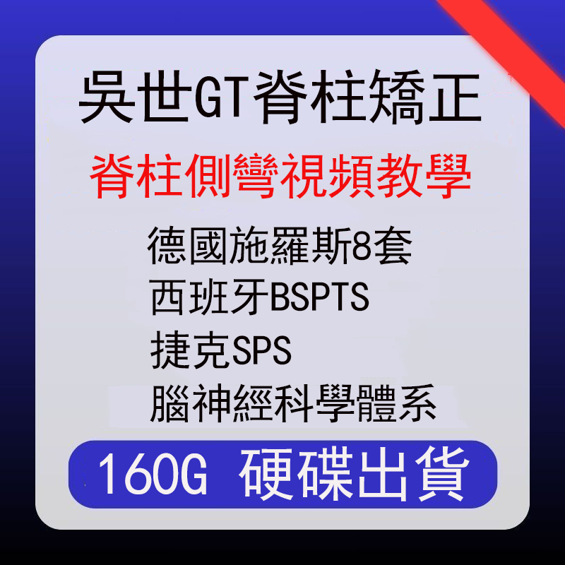 • 吳世GT脊椎矯正 德國施羅斯 西班牙BSPTS 捷克SPS 脊椎側彎矯正 全身骨關節技術,全套影片課程(160G硬盤出貨,無需下載,即插即看) NT$1990 詳情