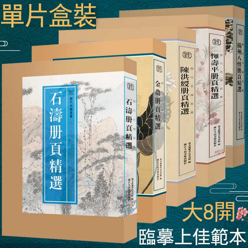 【超清大8開,單片盒裝】石濤冊頁精選 石濤山水畫冊 高清臨摹範本 花卉人物畫110幅 大尺寸,偏於臨摹裝裱