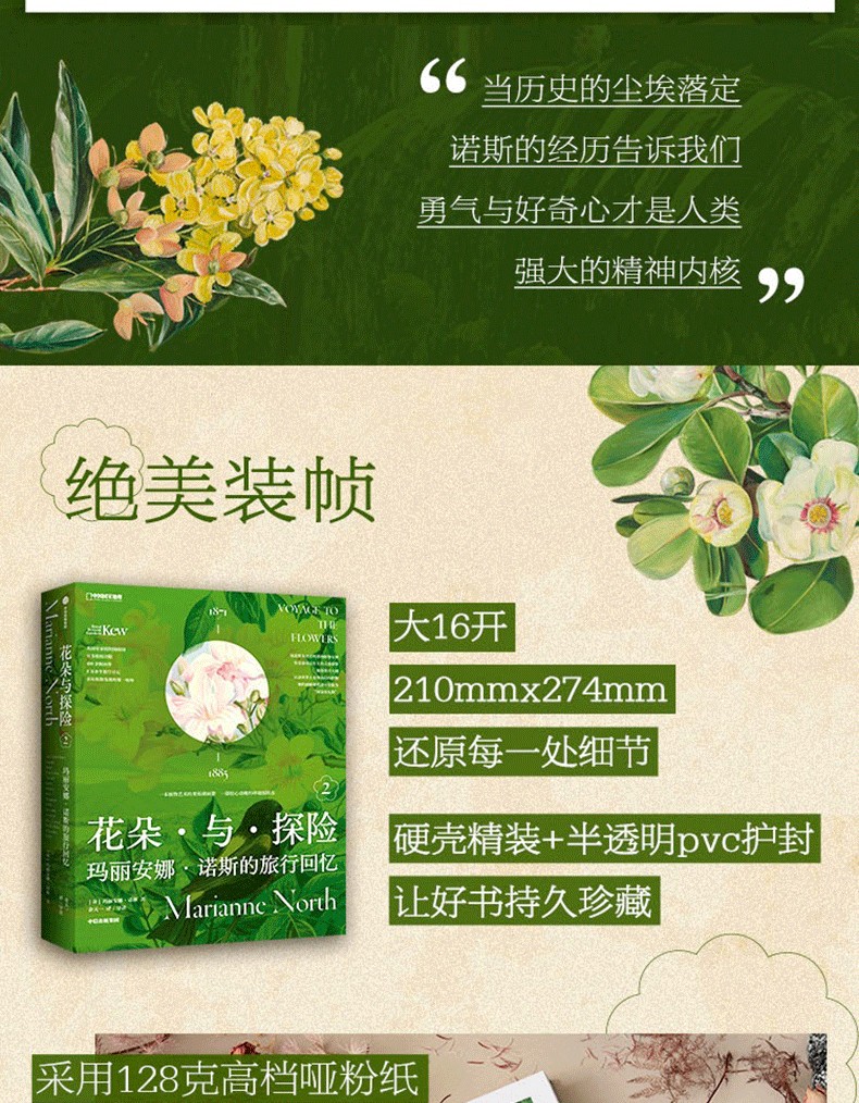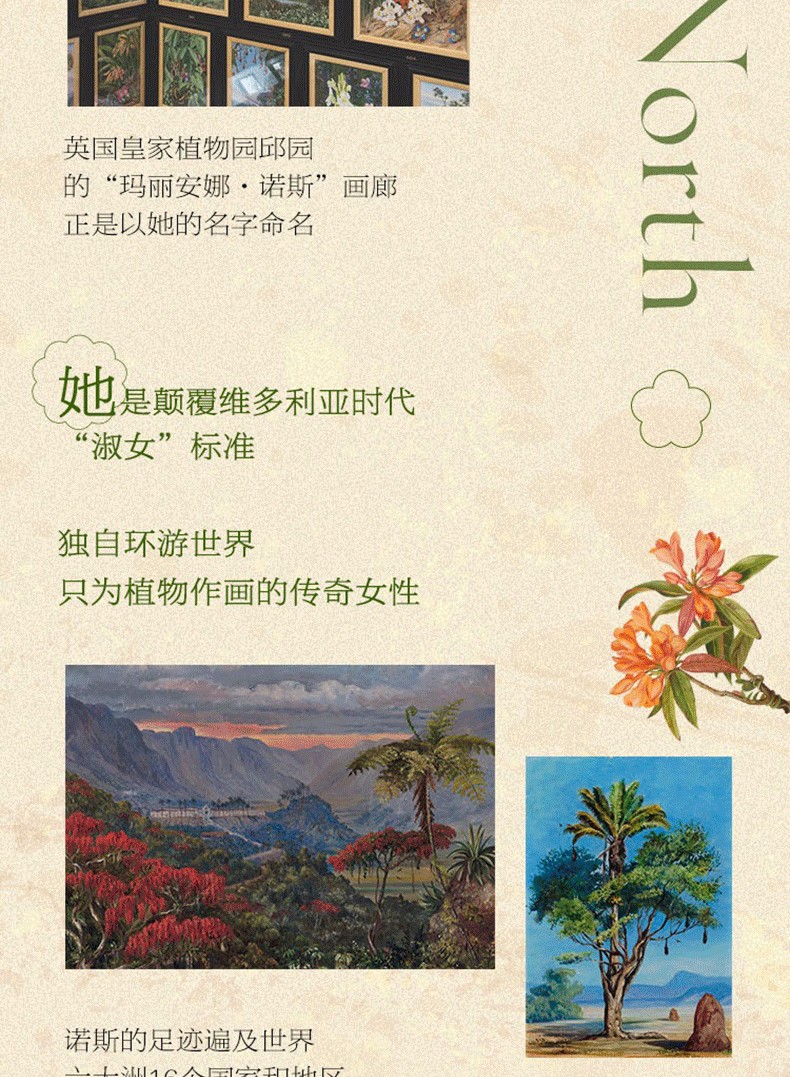 她也是女性先鋒精神的引領者,在維多利亞時代,挑戰世俗的束縛,成為不被他人左右人生的“大女主角”,堅定地追求夢想。跟隨諾斯的腳步,不僅體驗她如何以畫筆征服六大洲的奇花異草,更見證一個女性如何在男性主導的時代,用勇氣與才華書寫屬於自己的博物史詩。