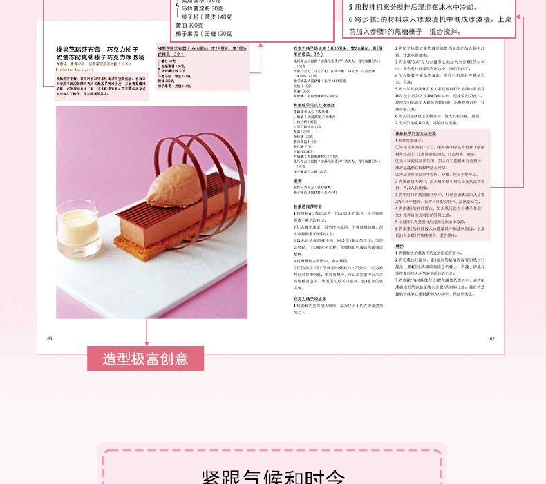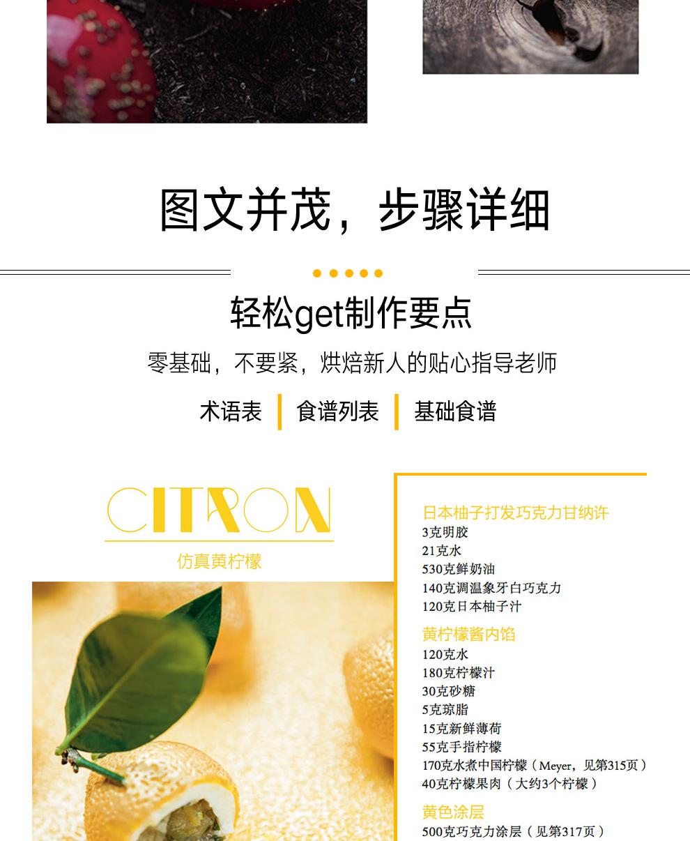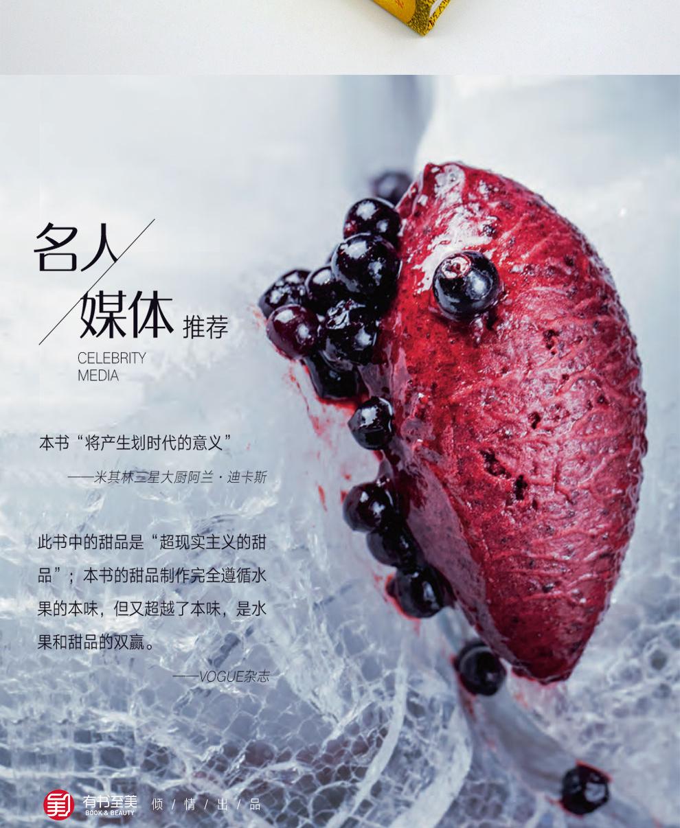 《水果進行曲 塞德里克·格羅萊的甜品創意法》中的“現代”系列甜品從大自然汲取靈感,避繁就簡,讓水果甜品的味道和質地達到了完美的契合。作者塞德里克將水果作為甜品創作的中心,這種甜品理念開創了法式創意甜點的新世界。這是一個方向性的徹底轉變,定義了全新的甜品製作方式。