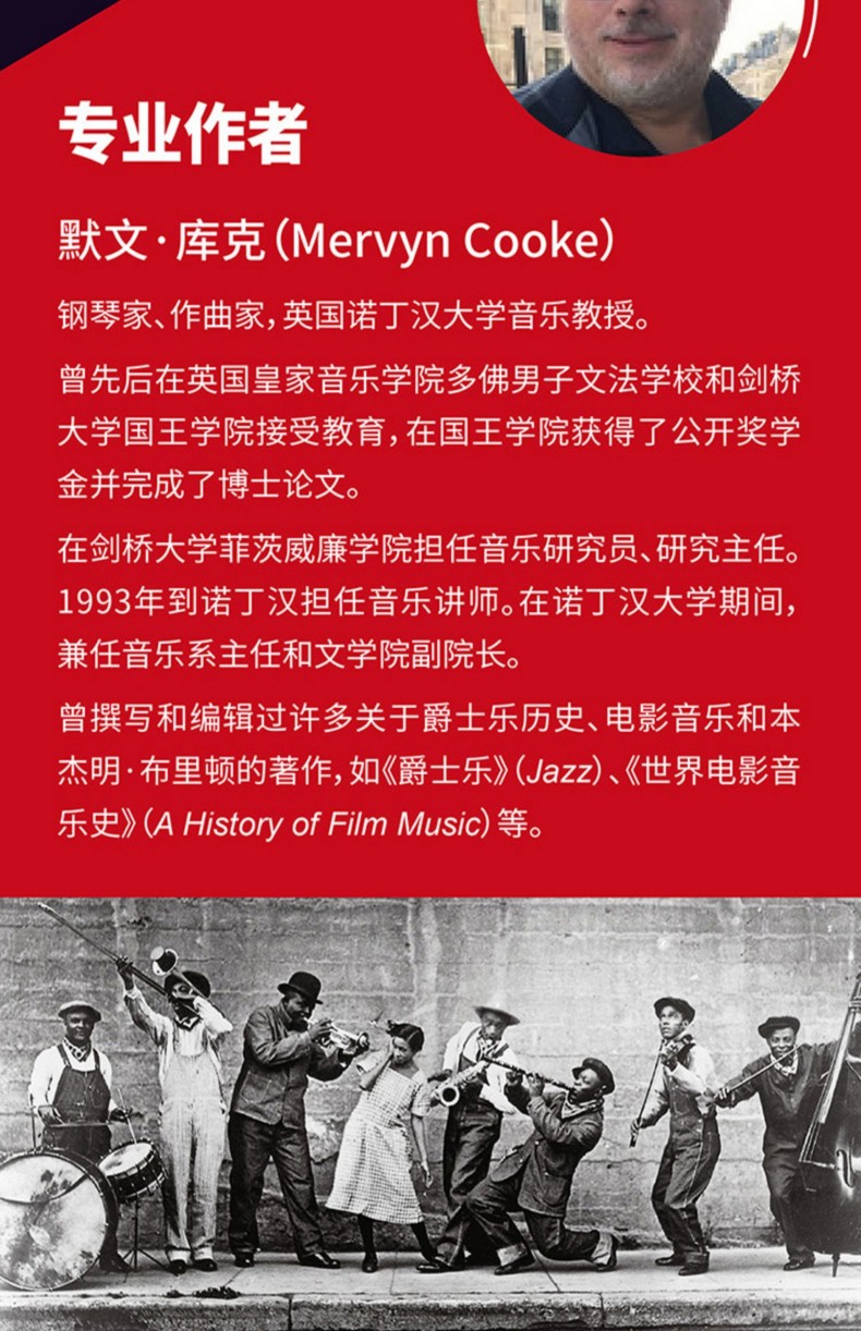 作者默文·庫克是英國諾丁漢大學音樂教授,也是鋼琴家和作曲家。曾撰寫和編輯過許多關於爵士樂歷史、電影音樂和本傑明·布里頓的著作,如《爵士樂》(Jazz)、《世界電影音樂史》(A History of Film Music)等。