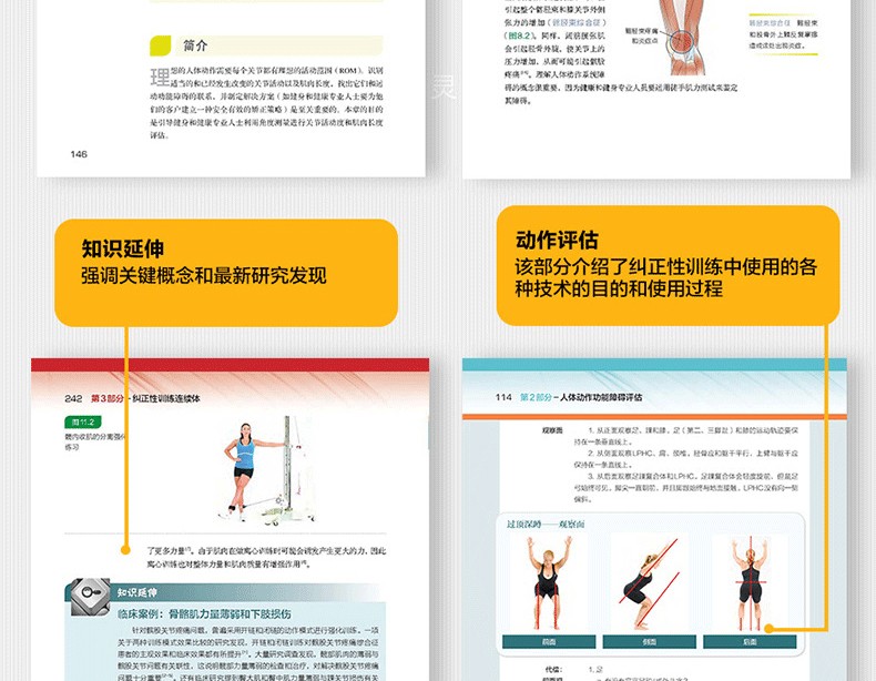 高清彩圖與文字描述相結合,展示針對身體各部位的評估及糾正性訓練技術。