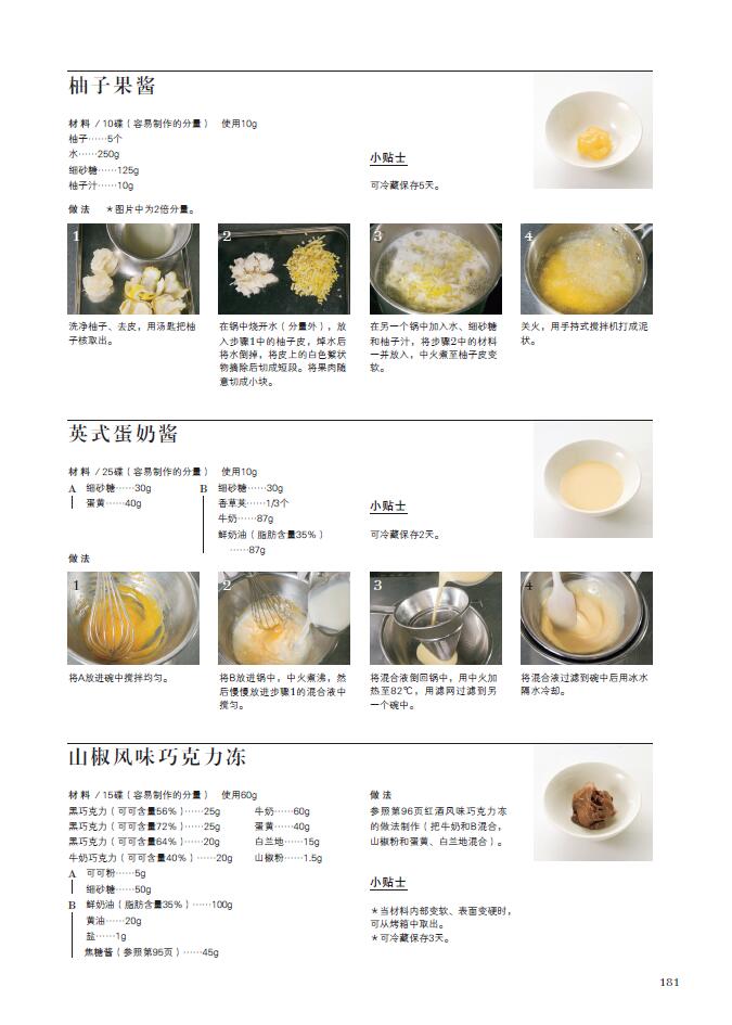 展現當代法式甜點烘焙的高水平和創新技藝,帶來夢幻般的視覺享受 45道顛覆感官的法國流行創意甜點,打造視覺和味覺的雙重饗宴 精選很具代表性的法式甜點款式,以傳統家常甜點和經典款甜點為基礎,從配方、造型、口感、技法、裝飾等方面進行創新,所創新出的甜點集精巧、質感與美味於一身。無論是米其林餐廳級的精緻蛋糕,還是洋溢著法式風情的閃電泡芙、舒芙蕾,或者藉助現代工具製作的糖品造型, 均代表了當代法式甜點烘焙的極高水平和創新技藝,都將帶來夢幻般的視覺享受。本書介紹的甜品按難易程度分成三級(★,★★,★★★),你可以循序漸進進行製作。
