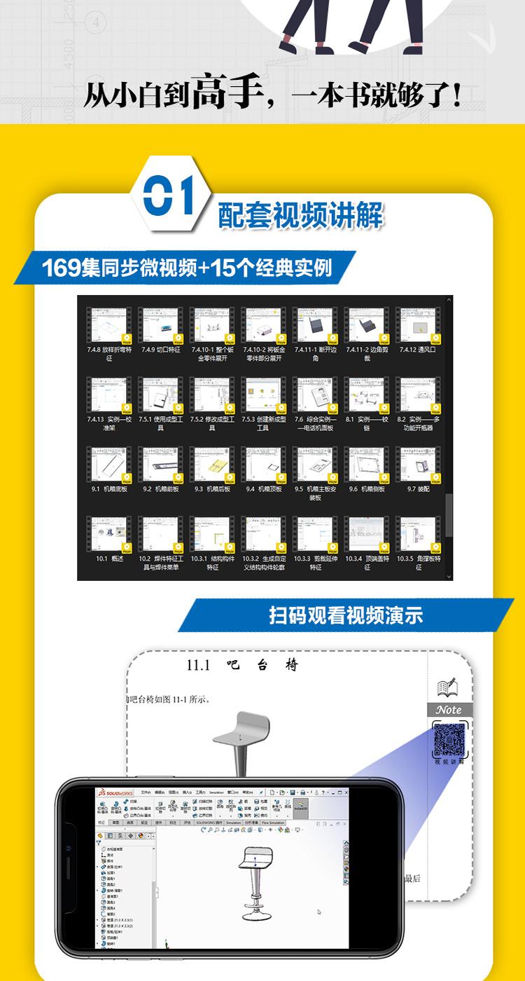 "【掃描封底「文泉雲盤」二維碼獲取配套資源】 【適用於SOLIDWORKS 2022/2021/2020等版本】 針對SOLIDWORKS 曲面·鈑金·焊接設計方向編寫,內容豐富!視頻演示:169集(段)高清教學微視頻,掃碼學習效率更高!典型實例:15個經典中小型實例,用實例學習更專業!綜合演練:6種不同類型綜合實例演練,實戰才是硬道理!工程圖集:8套不同領域的大型設計圖集及其配套的源文件和視頻錄像,總時長近4小時。建模題集:8套建模大賽試題,真題操練,鍛煉實戰技能。 ......