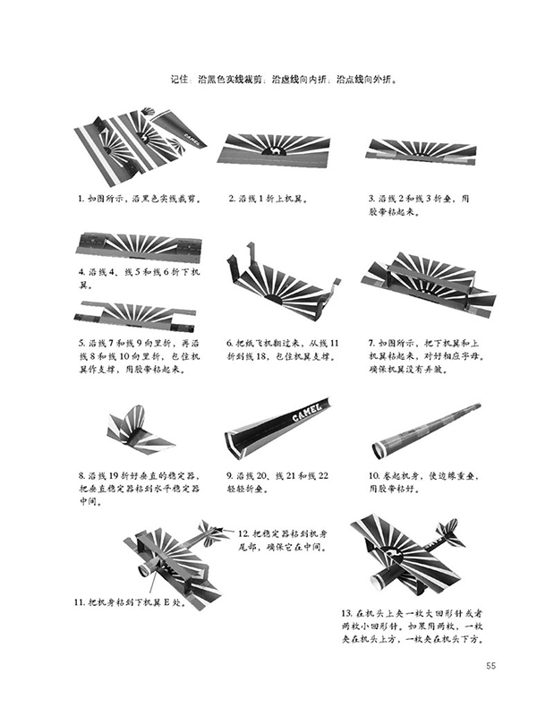 本套叢書分“經典機型”和“夢幻機型”兩冊,難度循序漸進,一共介紹了“伯爵”“雄鷹”“旋風”“幻影”等36種紙飛機模型的製作方法。書中深入淺出地介紹了紙飛機的飛行原理、調試技巧和投擲方法等,讓孩子在裁剪、粘貼和折疊的過程中,培養對科學研究的興趣和鑽研精神,激發孩子的想像力創造力,提高他們的空間思維能力和動手能力。