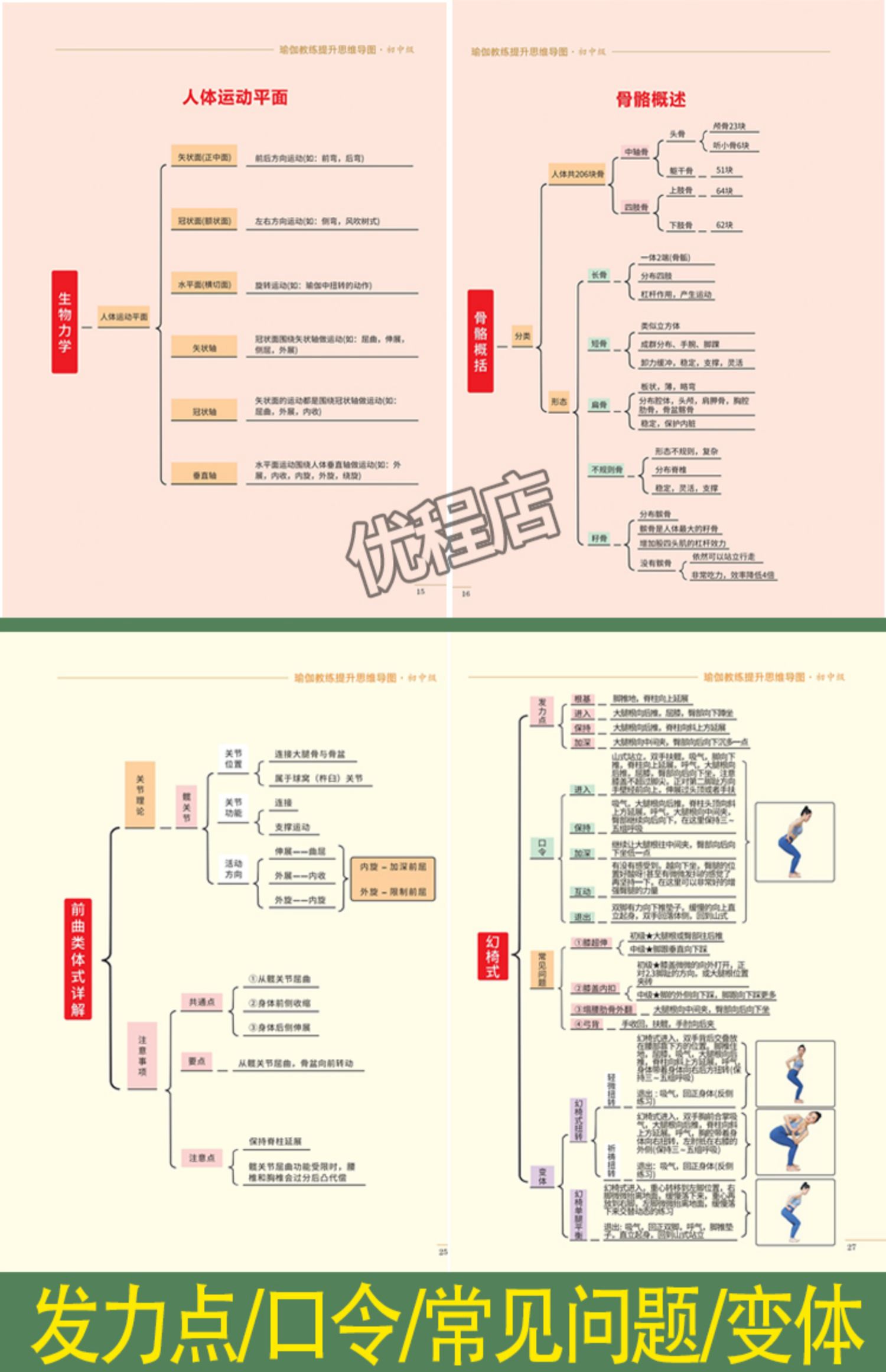 瑜珈教練提升思維導圖 初中級口令變體式分割 常見問題 瑜珈教練必備書籍