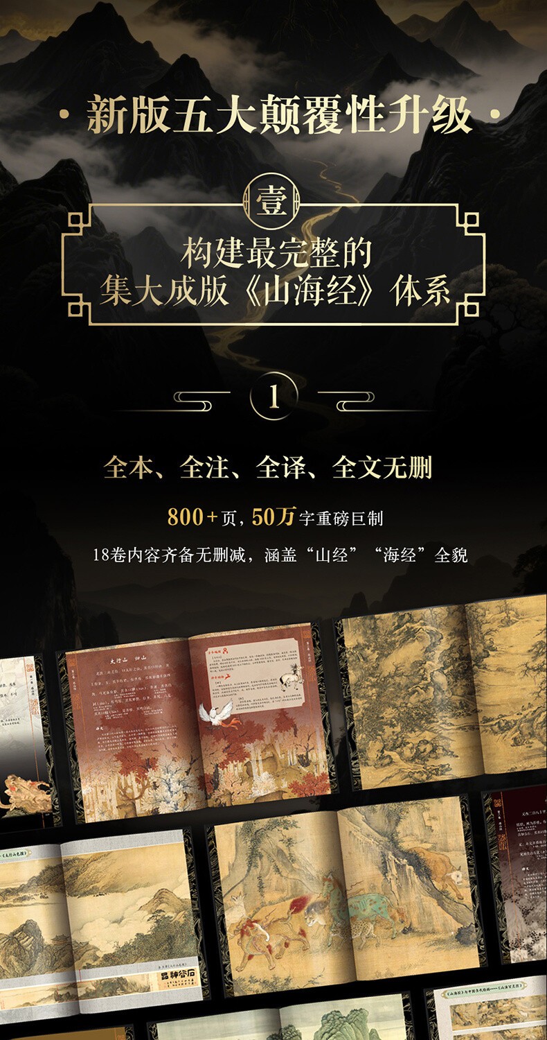 5.一套值得珍藏一輩子的《山海經》,不只書更是藝術品:滿版燙金封面設計,以高端藝術畫冊的標準打造顛覆傳統的《山海經》,一套三冊全部硬殼精裝,收藏有格調,禮贈顯品位!內頁使用仿古藝術紙,模擬古籍手感,閱讀儀式感max!隨書附贈11張《山系復原輿圖》+《華夏世系表》+32頁《神話思維導圖》,既是知識寶藏,也是藝術品級藏書!