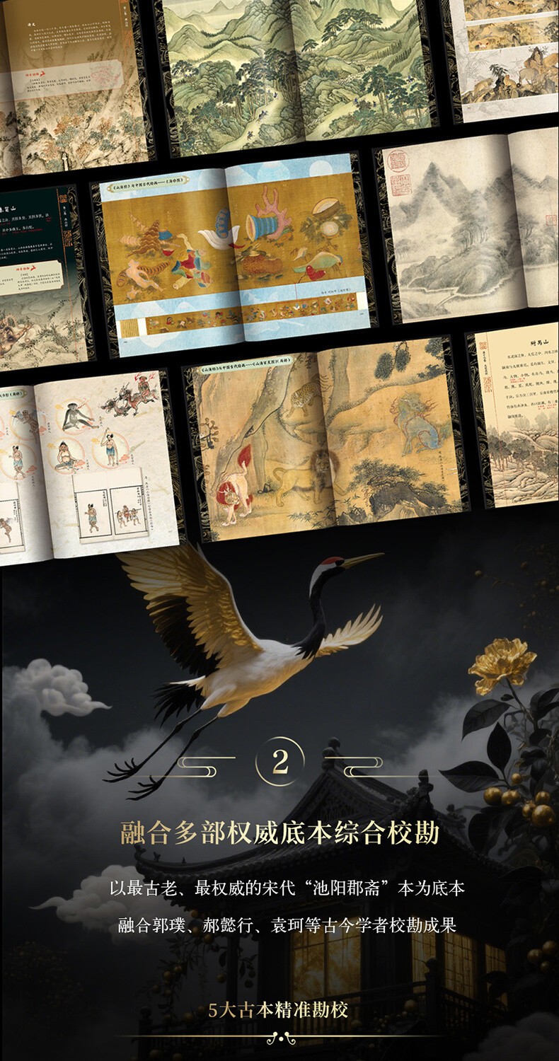 2.一套顏值爆表的《山海經》:開創先河的大16開開本,四色全彩高清印刷,視覺衝擊力拉滿。 700幅高清彩圖,既有古本《山海經》插圖還原宋明古本神韻,更有現代插畫家精心補繪,每一幅都嚴格遵循古籍描述,色彩瑰麗,筆觸細膩,還原山海經中的奇珍異獸、神靈仙人等,重現奇幻瑰麗的神話世界!