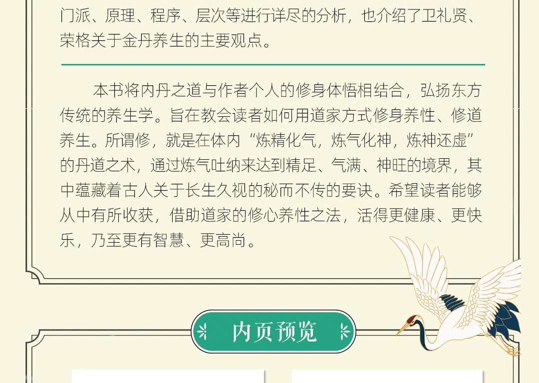 僅闡述了金丹道養生的原理,而且還介紹了金丹道養生的方法。 “太乙”是至高無上的稱謂,即指“太乙真炁”。古人云“