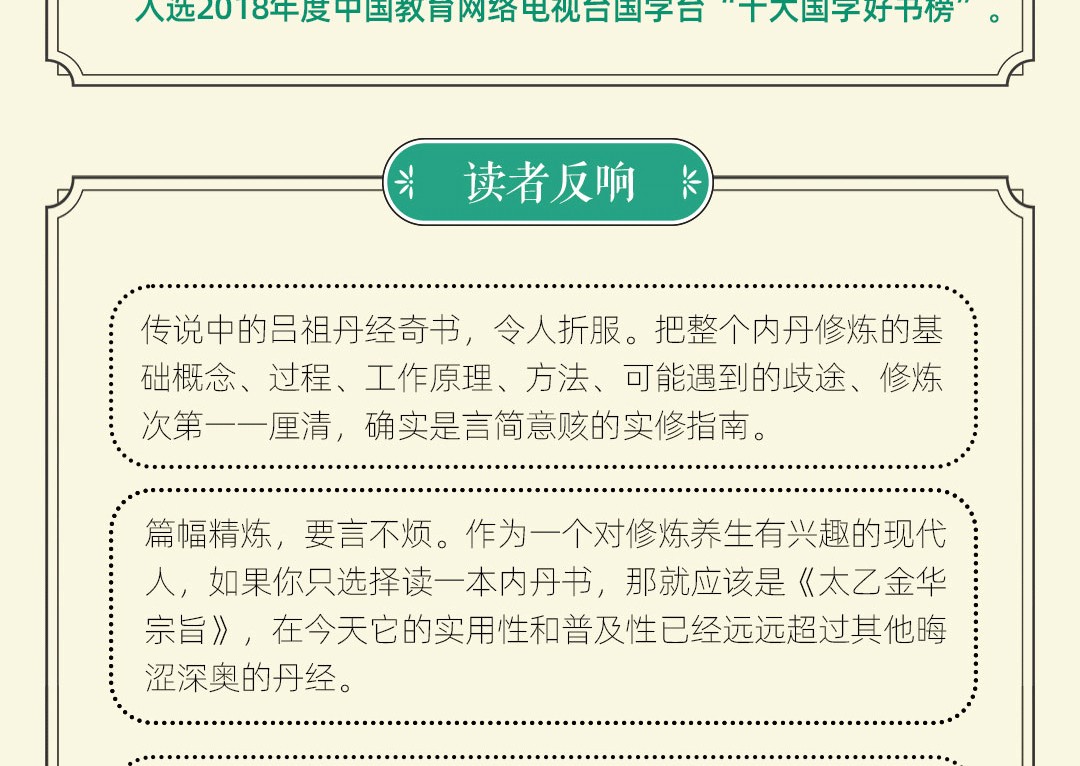 《太乙金華宗旨》一書,是道家修煉養生的寶典,也是道教仙人呂洞賓長生不老之道的秘笈。道教內丹修煉的一部奇書,不