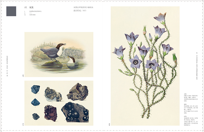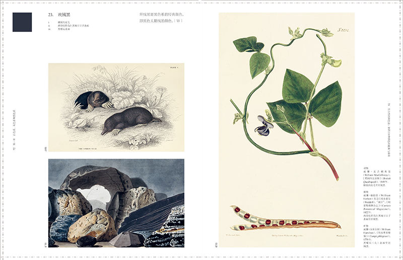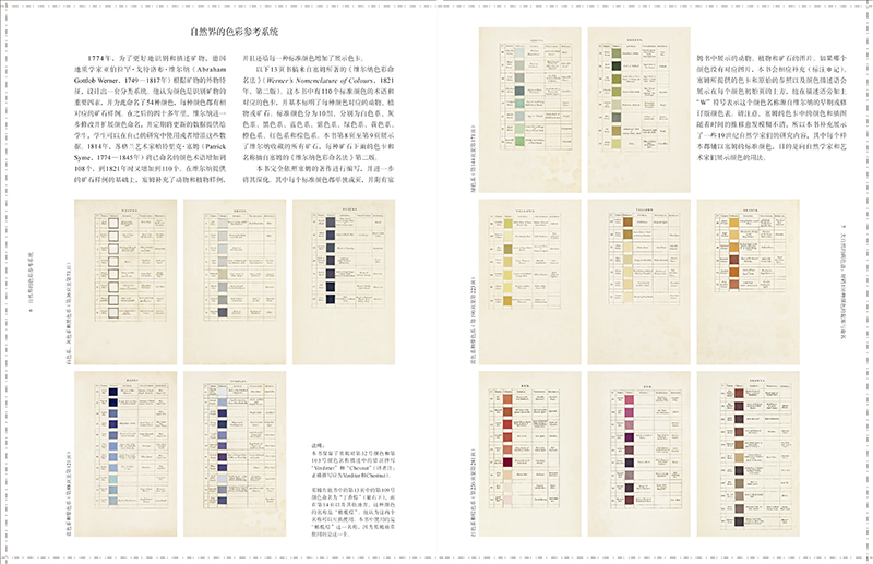 本書完整呈現了“維爾納色彩命名法”中的110種顏色,通過1000張動物、植物、礦物類別的插圖,介紹這110種顏色命名的由來,以及目前西方世界對“維爾納色彩命名法”的研究與解讀。