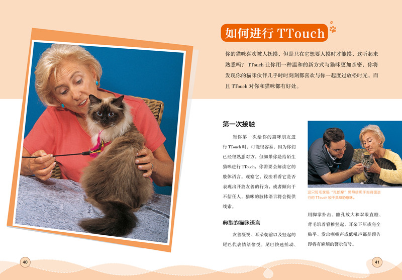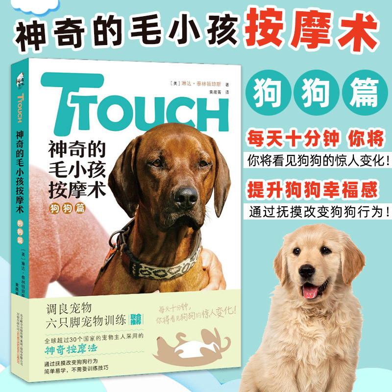 琳達‧泰林頓瓊斯著黃薇菁譯的《TTOUCH神奇的毛小孩按摩術(狗狗篇)》講述的TTouch是一種溫和尊重的訓練方法,能夠提升動物的健康和性情,並發展人與動物之 間的信任關係。 訓練是為了能讓動物與人類更舒適自在地生活,TTouch以此為目的,不僅關注動物的行為,更著眼於動物的身體健康以及性格的發展,力求讓動物的表現得到整體的提升。 而整個的過程,由於使用充滿尊重、非常溫和的TTouch方法,使我們與動物的信賴關係也得到提升。
