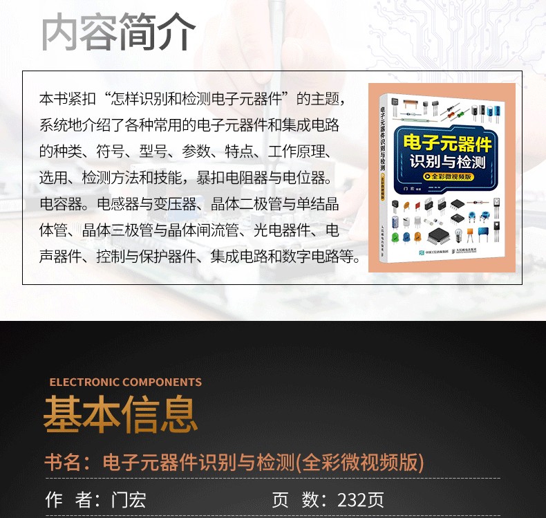 《零基礎電子元器件從入門到精通》全面系統地介紹了各種常用電子元件的識別、特點及檢測方法,從電子基礎知識入手,主要介紹了電阻器、電容器、電感器、二極管、三極管、場效 晶體管、閘流管、積體電路和常用電氣元件的辨識與偵測技能。