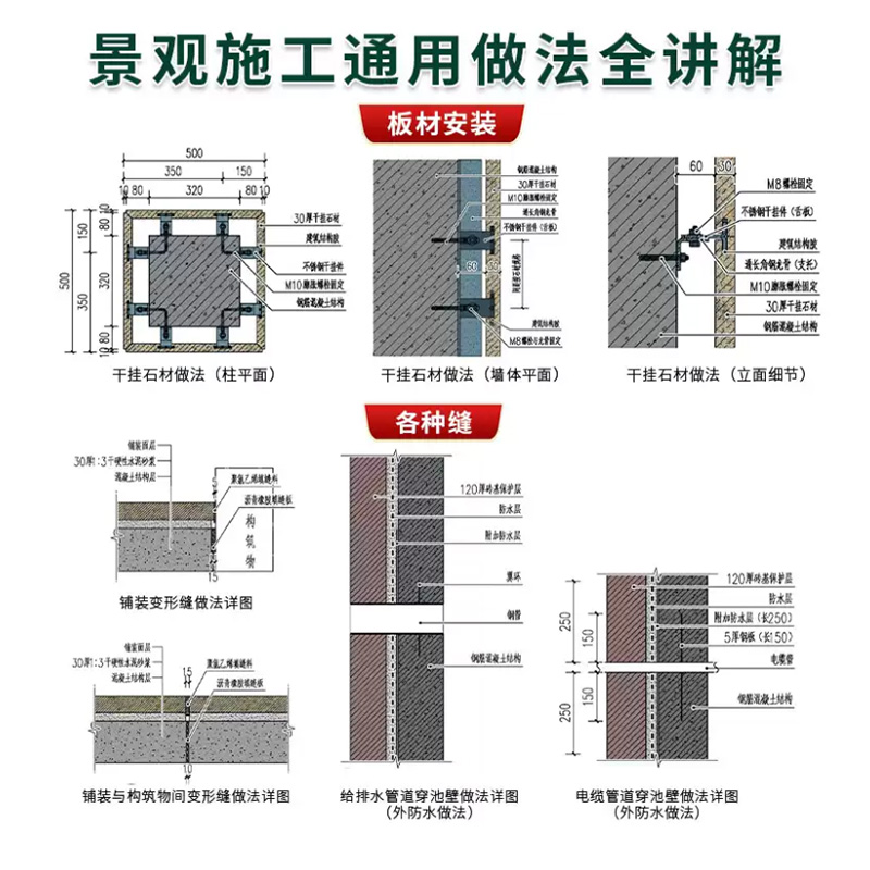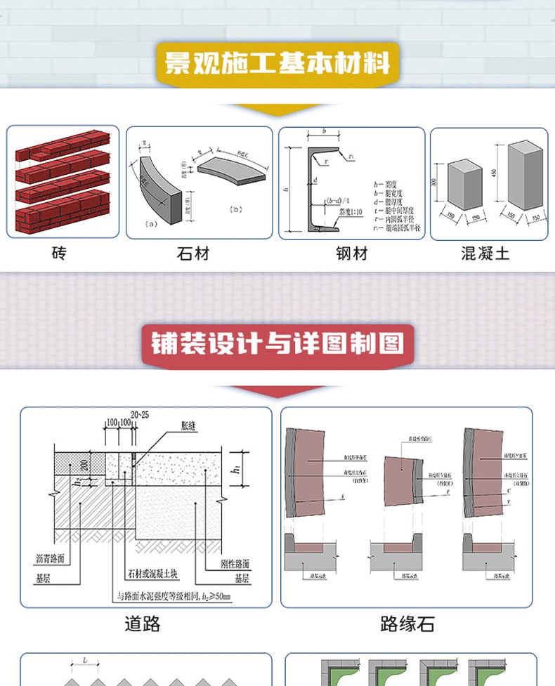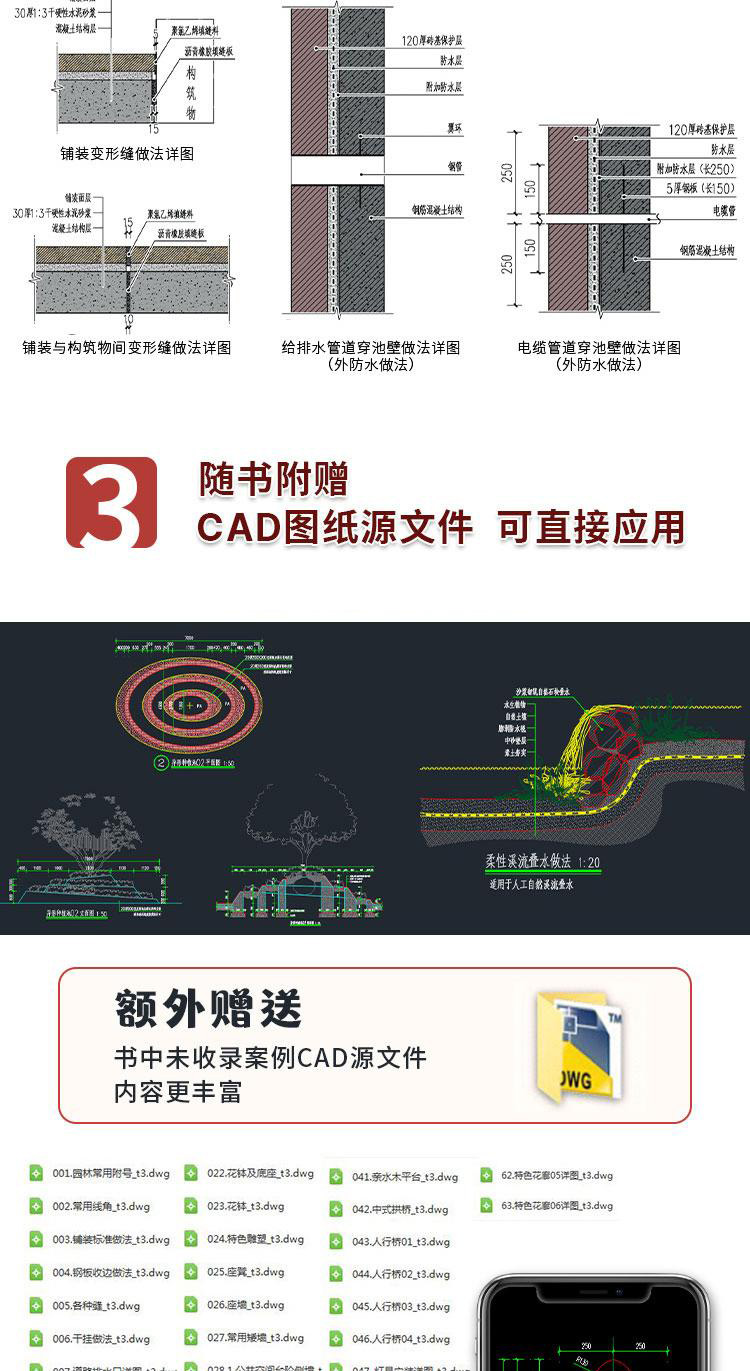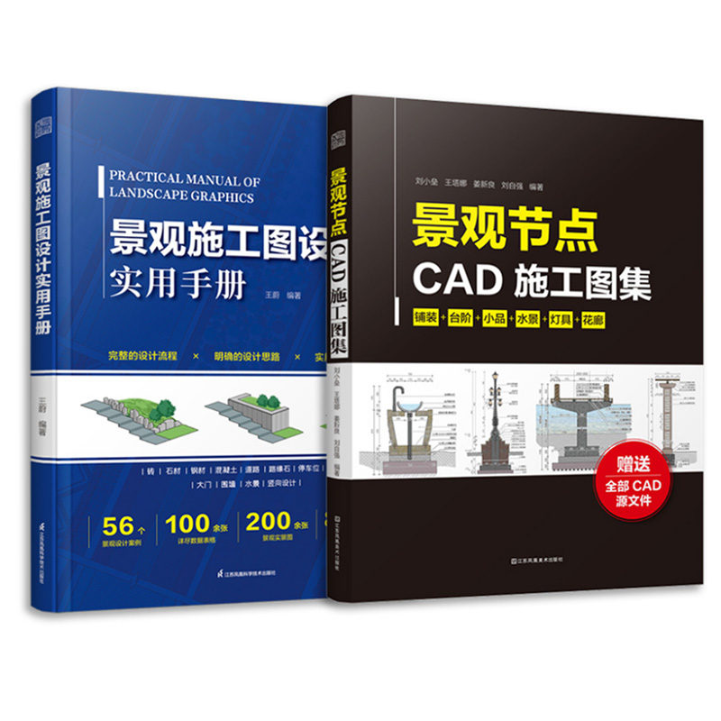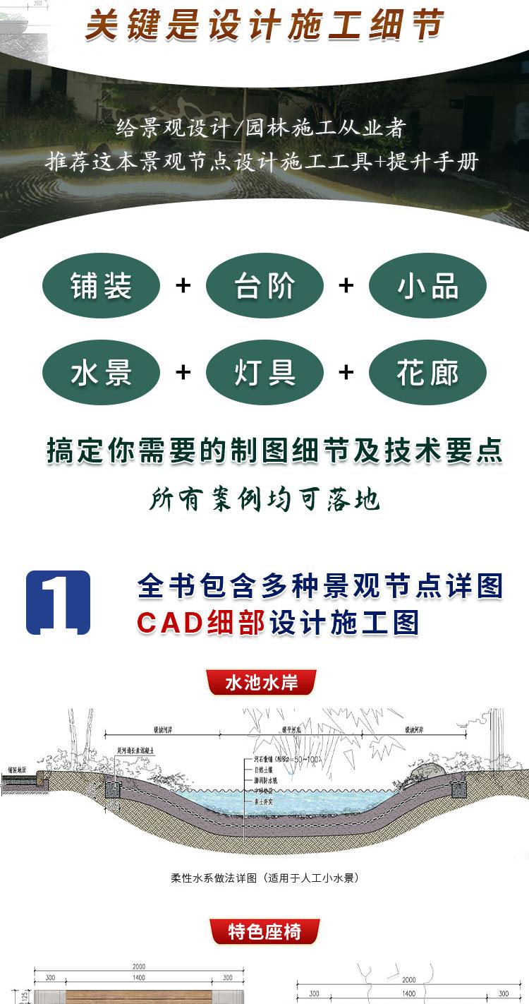 景觀節點CAD施工圖集+ 景觀施工圖設計實用手冊(共2冊)附贈全部CAD源文件 施工圖設計規範 景觀施工基本材料 園林工程參考書