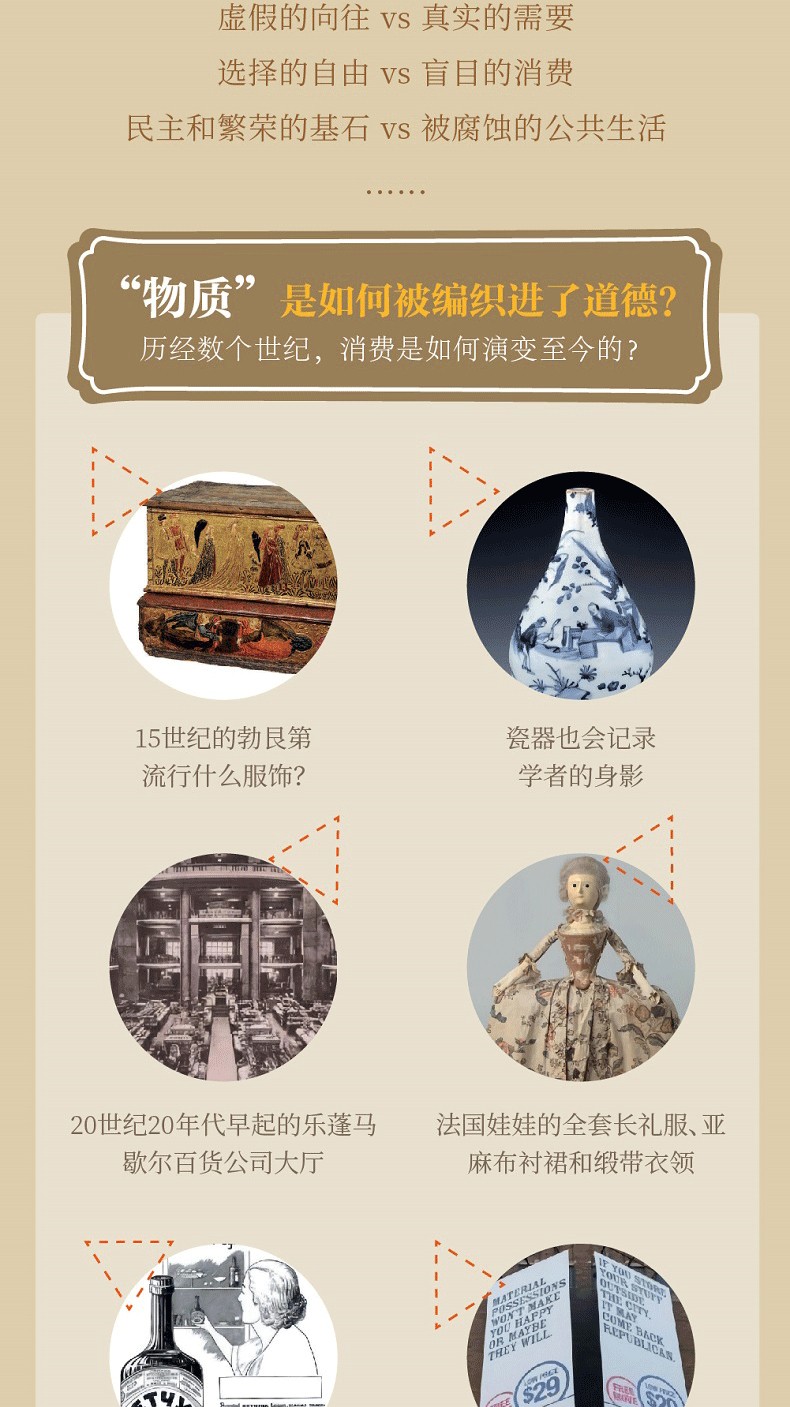 物質慾望不是一項現代發明,了解其來源和增強的過程,有助於跳脫開道德爭論的束縛,得出更加慎重的關於消費及其結果的評價。