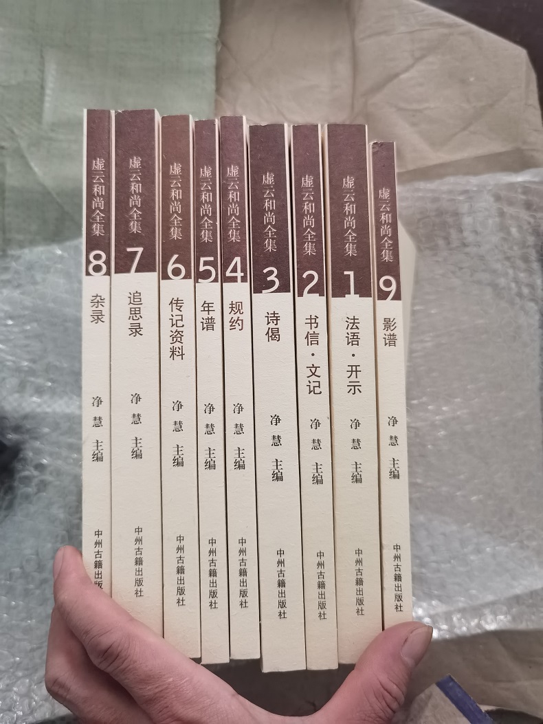 《傳記資料》部分,所收集的以一手資料為主,包括兩個面向:一是現成的傳記文章,二是從報刊、寺誌等文獻中蒐集到的有關虛老行蹟的零星記載。至於後人在一手資料的基礎之上所完成的傳記著作,如宣化上人主編的《虛雲老和尚畫傳集》、何明棟《虛雲和尚傳》、釋惟升《虛雲老和尚的足跡》等書,則不在《虛雲和尚全集(套裝全9冊)》的範圍之內。