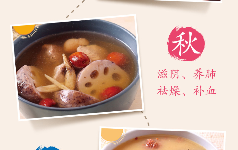 秋天,萬物成熟,草木漸趨蕭條,人體的生理活動從“夏長”漸漸轉為“秋收”。秋三月,肺主令,肺金太旺則克肝木,且燥邪容易耗傷津液,養生宜滋陰、養肺。同時,秋風勁急,地氣清肅,養生離不開“收養”,因此,要潤燥、補血。 《廣東靚湯3》根據秋季的氣候特點,為讀者推薦了滋陰、養肺、祛燥、補血四類適時湯品,並詳細講解了近百款湯品的製作方法、營養功效和烹飪竅門。