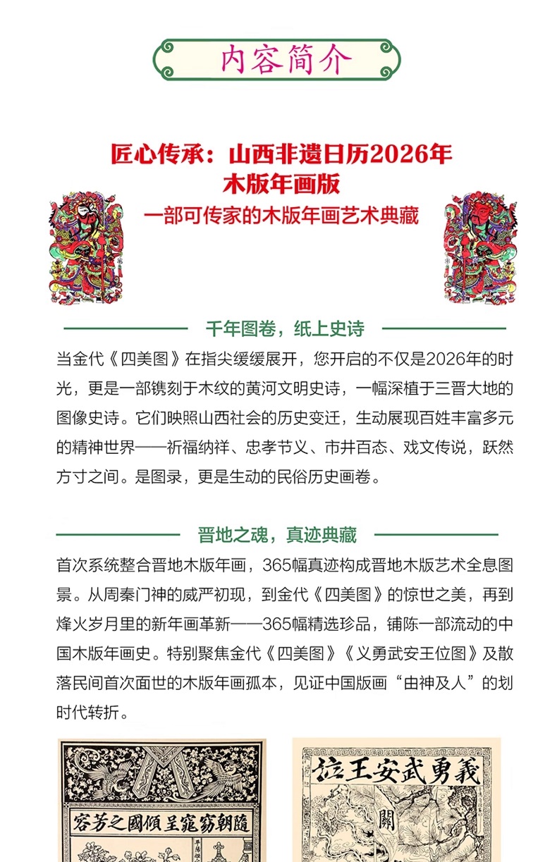 匠心傳承 2026山西非遺 木版年畫日曆【刷邊特裝版】 非遺技藝 365幅晉地年畫精粹 收錄金代至近代孤品 涵蓋門神戲劇民俗等年畫博