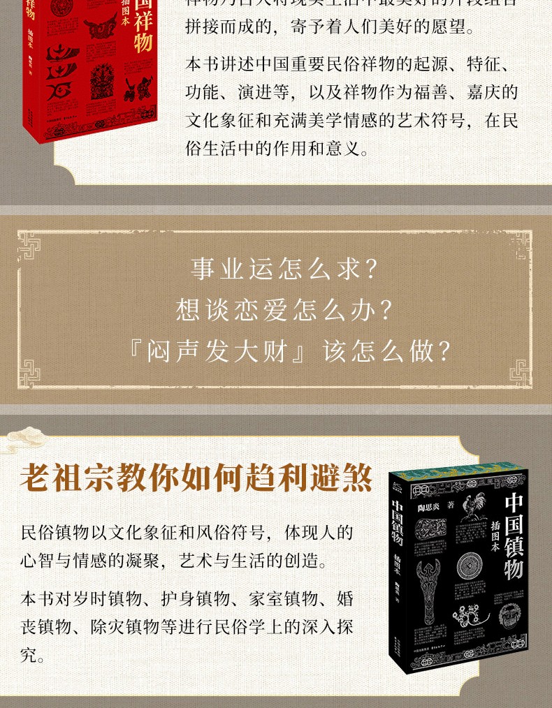 中國祥物+中國鎮物(全2冊) 插圖本 陶思炎 中國人的傳統習俗 民俗研究 禁忌信仰 擇吉 文化象徵 風俗符號 歲時建築器用禮儀 文字圖畫