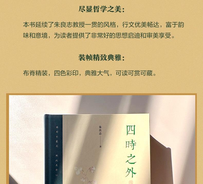 1.「四時之外」四字抓住了中國藝術的靈魂,朱良志教授從時間和歷史入手,梳理中國藝術的基本觀念,豐富了「生命超越美學」的內涵,打開了足與西方哲學和 藝術對話的新天地。 2.朱良志教授為美學名家,長期致力於中國傳統哲學和藝術關係的研究,著作廣受歡迎,書粉眾多。 3.本書延續了朱良志教授一貫的風格,行文優美暢達,富於韻味和意境,為讀者提供了非常好的思想啟迪和美學享受。 4.布脊精裝,四色彩印,裝幀典雅大氣,可讀可賞可藏。