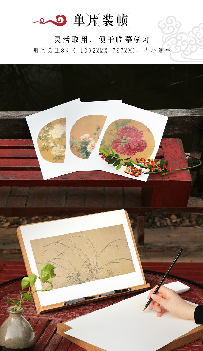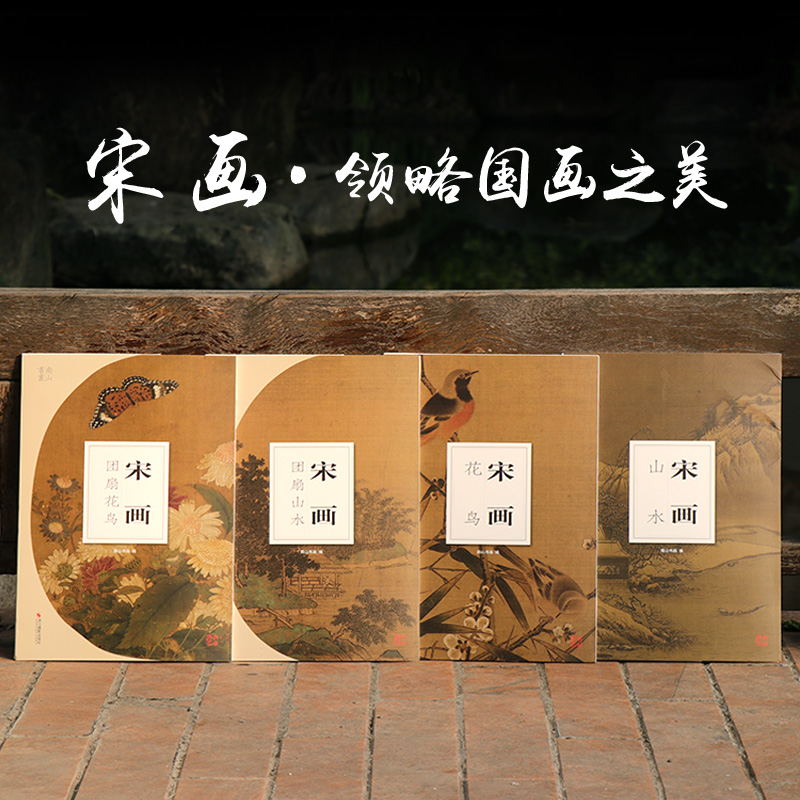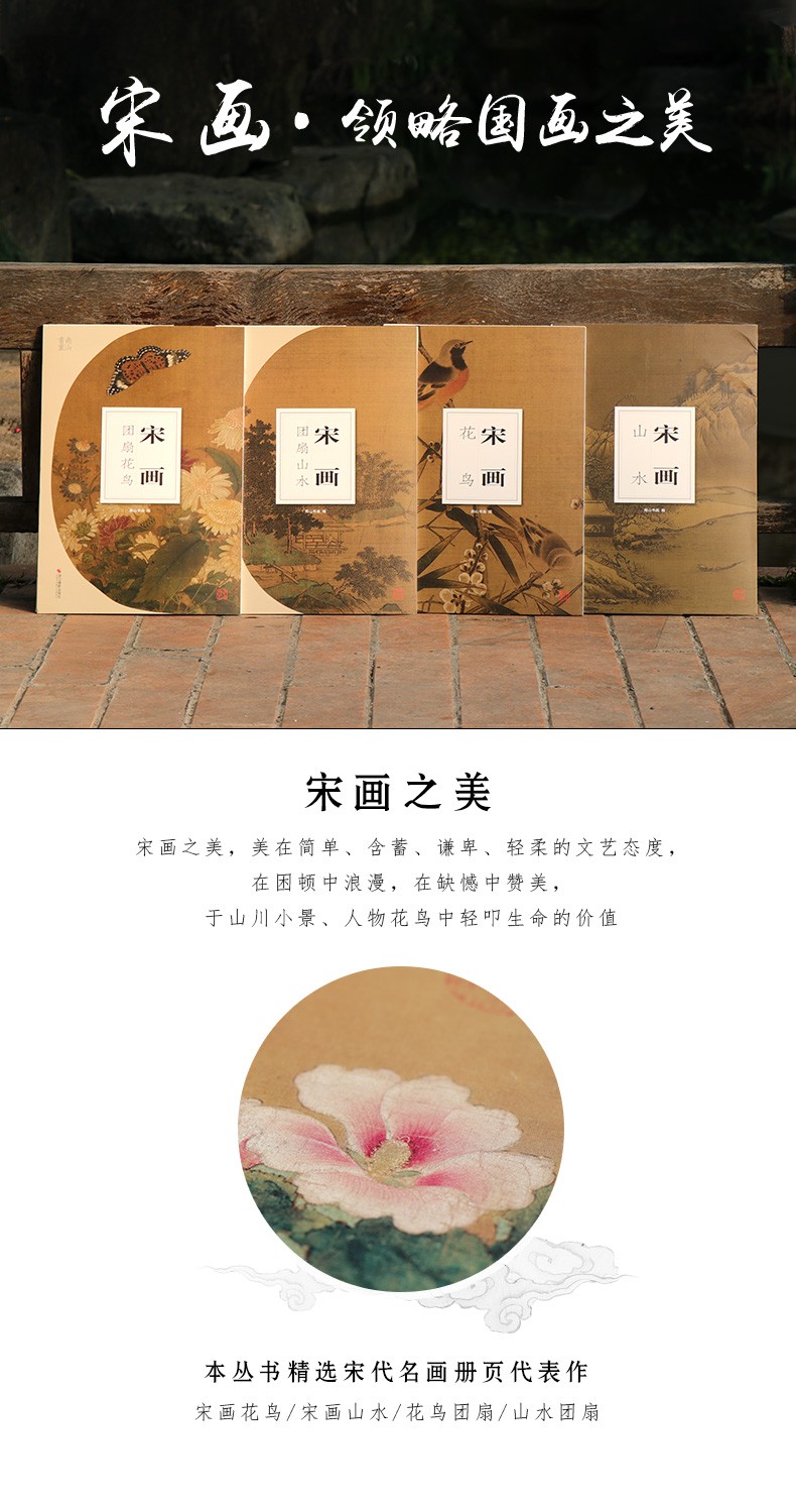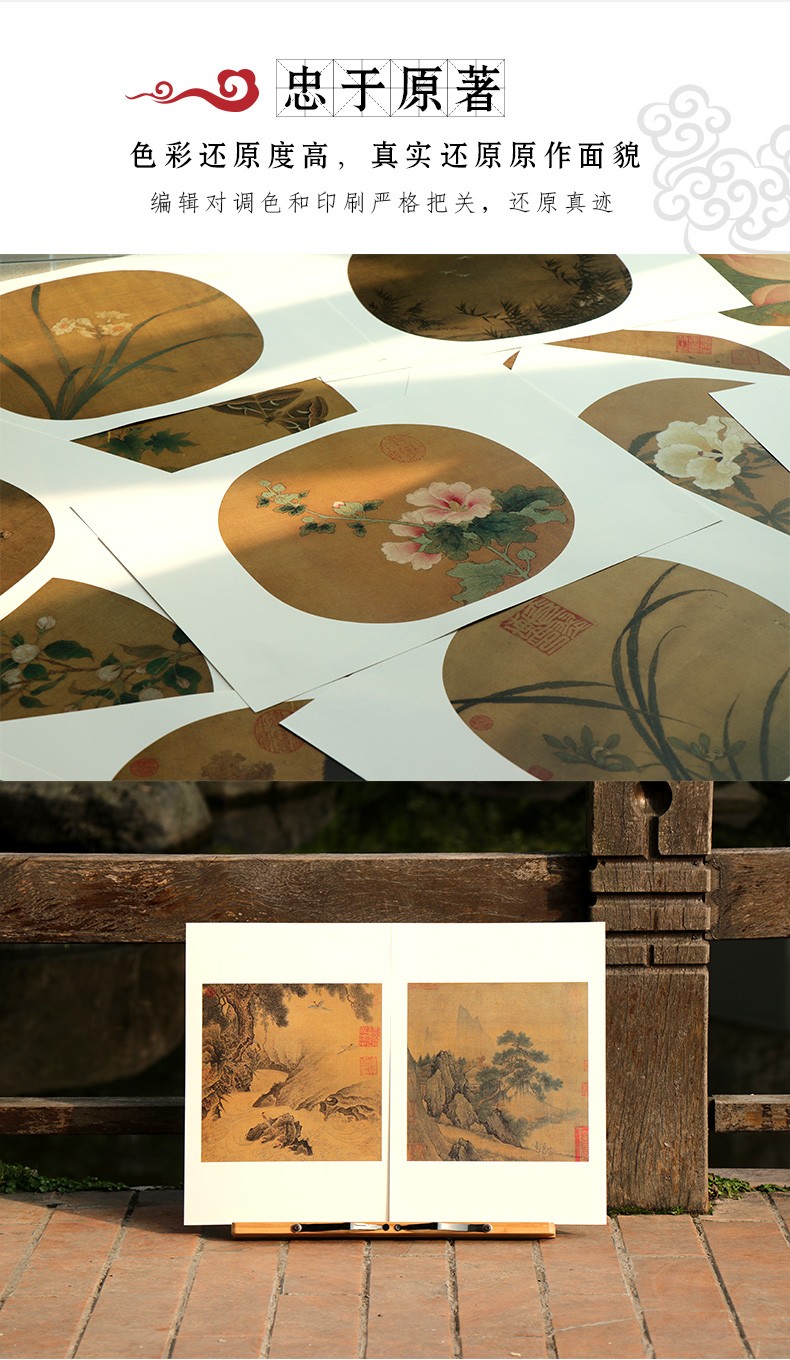 全4冊 宋畫山水花鳥畫冊頁團扇96張 正8開 散頁裝幀 高清圖臨摹裝裱收藏