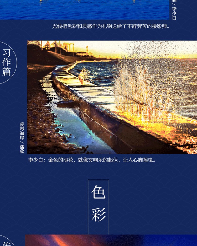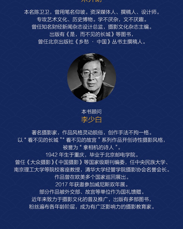 本書以攝影家李少白的攝影觀為基礎,從創作理念、觀察、構圖、光影、色彩、意境、樂趣等諸多方面入手,進行攝影講解,並創造性地加入了導師與學生的作品交流,豐富的案例解析使得知識點講解更為具體、深刻。李少白經驗頗深,他卸下了強加在攝影身上的各種“哲理”“意義”“價值”等沉重的枷鎖,把攝影還原為一種感受美、表達美的簡單愉悅的手藝。本書在把握李老師創作底層思維的基礎上,融會貫通文史哲等博雅知識,希望激發讀者對藝術和美學的興趣,使其擁有更加開放的心態和對世界的好奇,以保持創作的活力和更上層樓的可能。