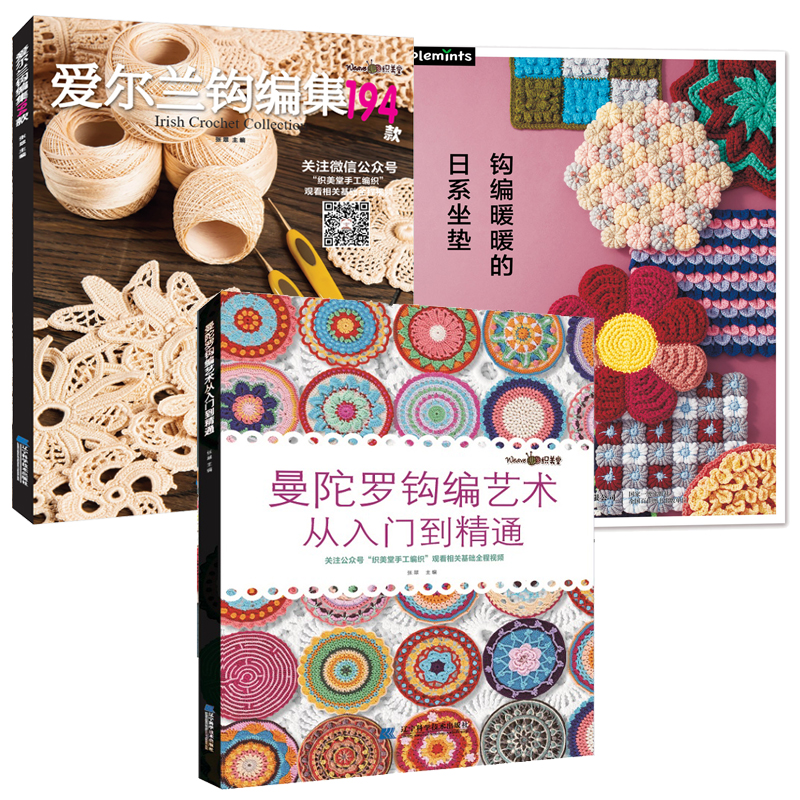 曼陀羅鉤編藝術+愛爾蘭鉤編集194款 +鉤編暖暖的日系坐墊(全彩圖解共3冊)