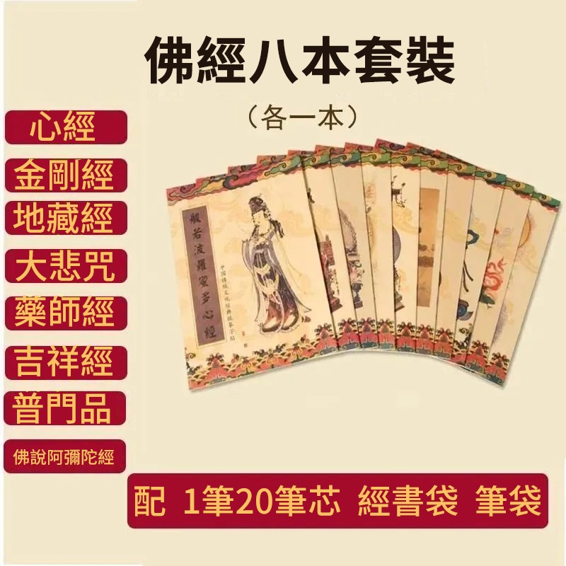 手抄佛經8本 每天抄寫經文,積德行善,結佛緣,旺運勢!比吃齋還要夯100倍!堅持「手抄經」功德無量! (贈送抄經筆,筆芯*40,筆袋,經書袋)