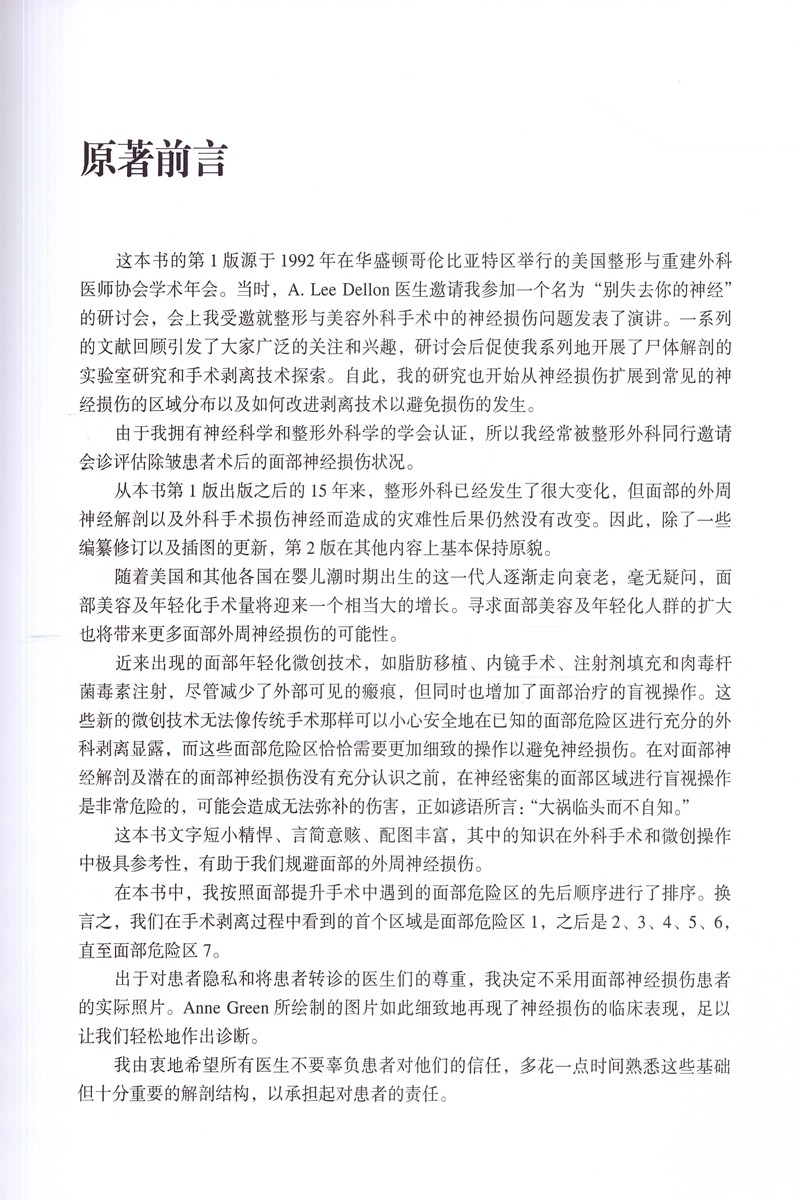 《臉部危險區(第2版):整形美容醫師必知的臉部七大「雷區」》將臉部各部位中的感覺神經分支和運動神經分支的危險區域明確地界定了,由淺入深、由表及里、圖文並茂地描述了臉部神經損傷後的臨床表現、整形及手術表、