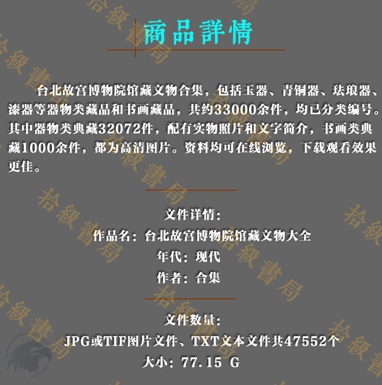 台北故宮藏品33000件 高畫質圖片素材 附文字說明(128G U盤出貨 免下載 即插即看,手機電腦平板都能看)