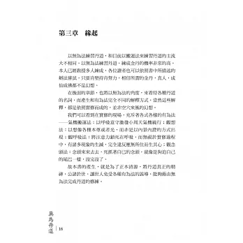 無為丹道非常簡單,但是身心非常複雜,每個人心中各有不同的挑戰要面對,身體有不同的障礙要克服,眾多現象將至簡大道變得複雜,本書有系統的介紹無為法及其 修練法門,簡單易學,只要勤於實修實證,便能體會其中的奧妙。