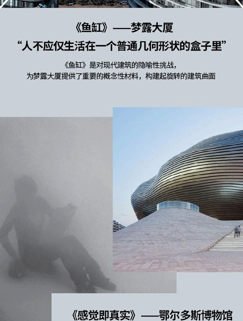 4.收集近200餘幅圖像資料,除了實景照片,還包含珍貴建築圖紙和三維可視化圖,既有建築細節,也有宏觀大尺寸展陳,直觀感受建築之美,領悟MAD建築師事務所和馬岩松的設計理念與思想意境,得到靈感啟發。