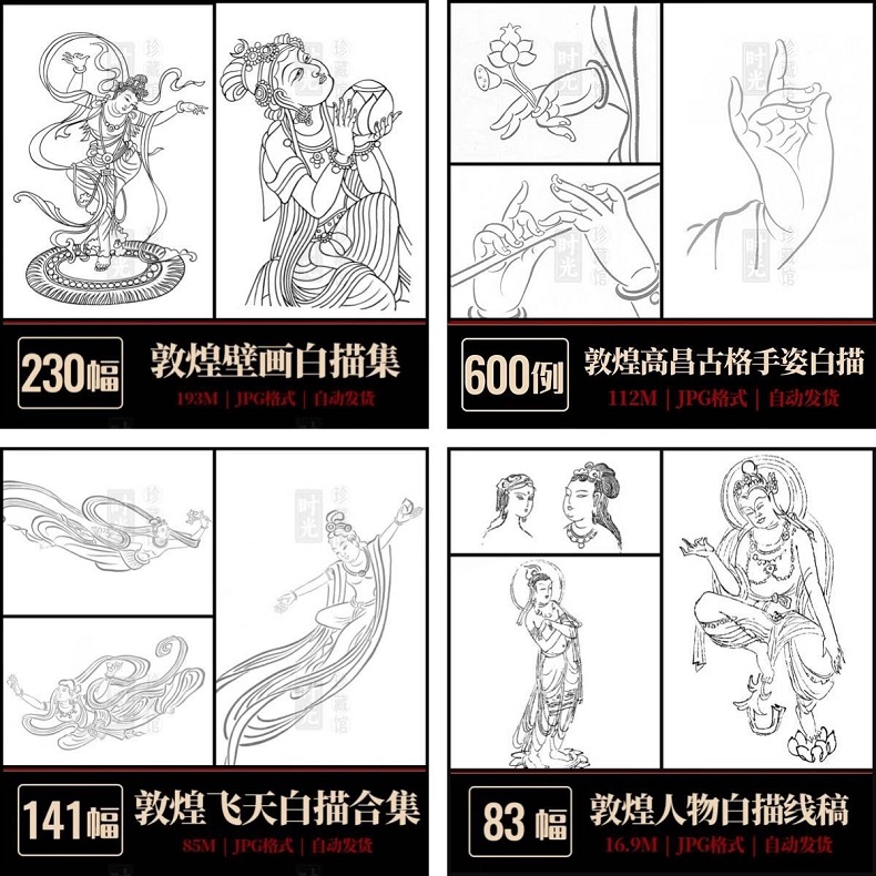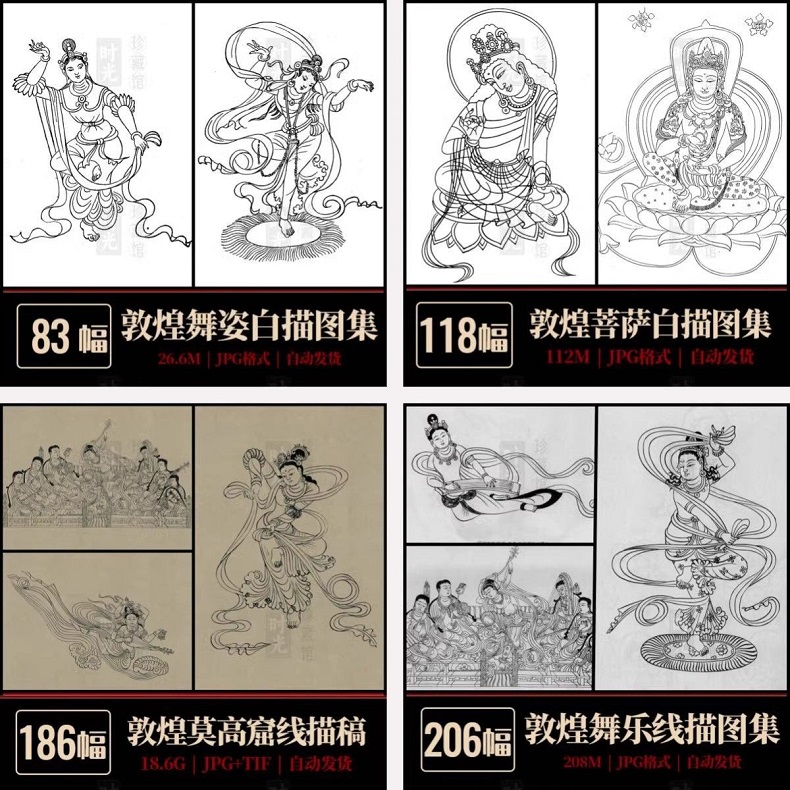 28000張高清敦煌壁畫 線描飛天高清畫冊電子版173G 莫高石窟佛像雕塑臨摹素材 (173G U盤發貨 免下載 即插即看 手機電腦平板都能看)
