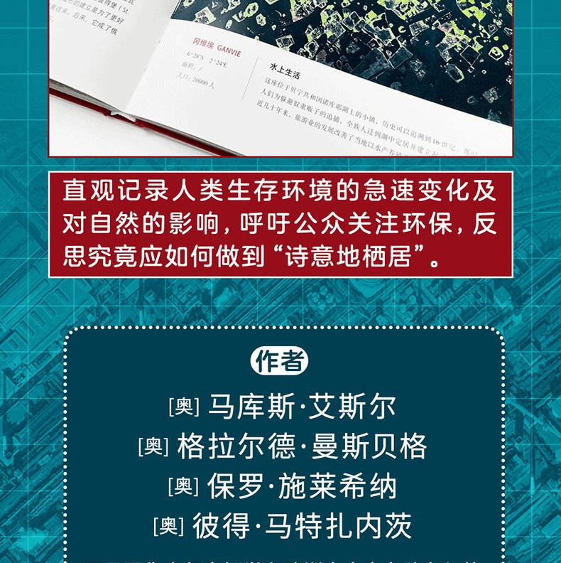 這本大開本的圖集也集中展現了人類活動對環境造成的影響,聚焦於人類生存空間中那些令人著迷的細節,期望以這種直觀的方式引導公眾反思自身與居住環境之間的關係,意識到自身改變自然的能力,並承擔起對未來應負的責任。