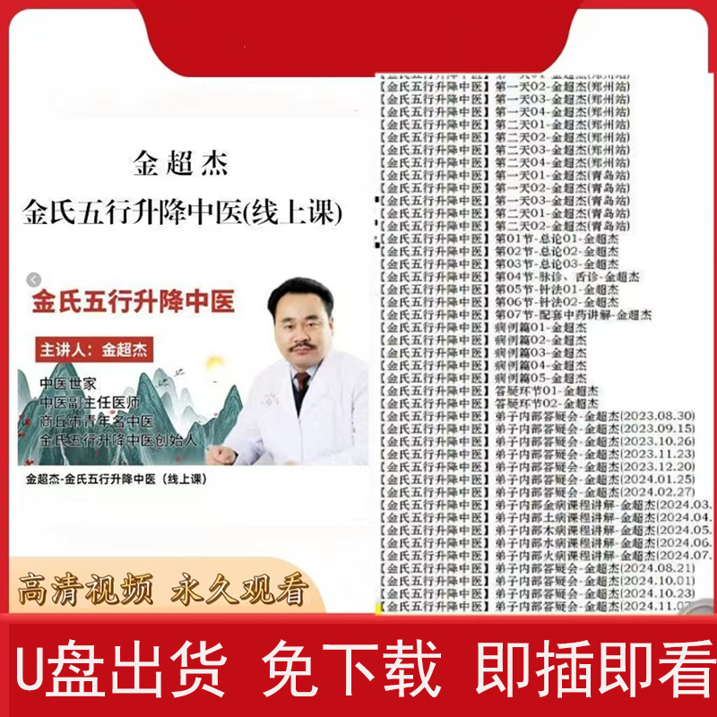金超傑 金氏五行升降中醫進階班講義(1冊) 金氏五行升降中醫(第四期線下課) 全套視頻教程 64G U盤發貨 免下載 即插即看