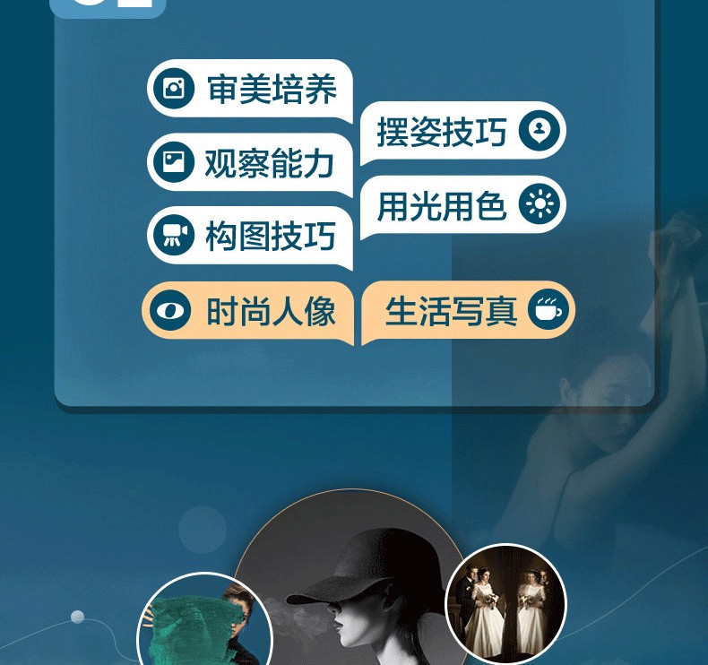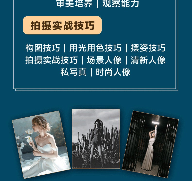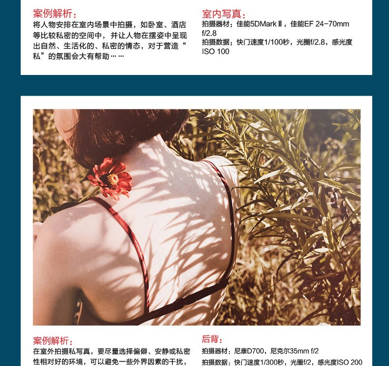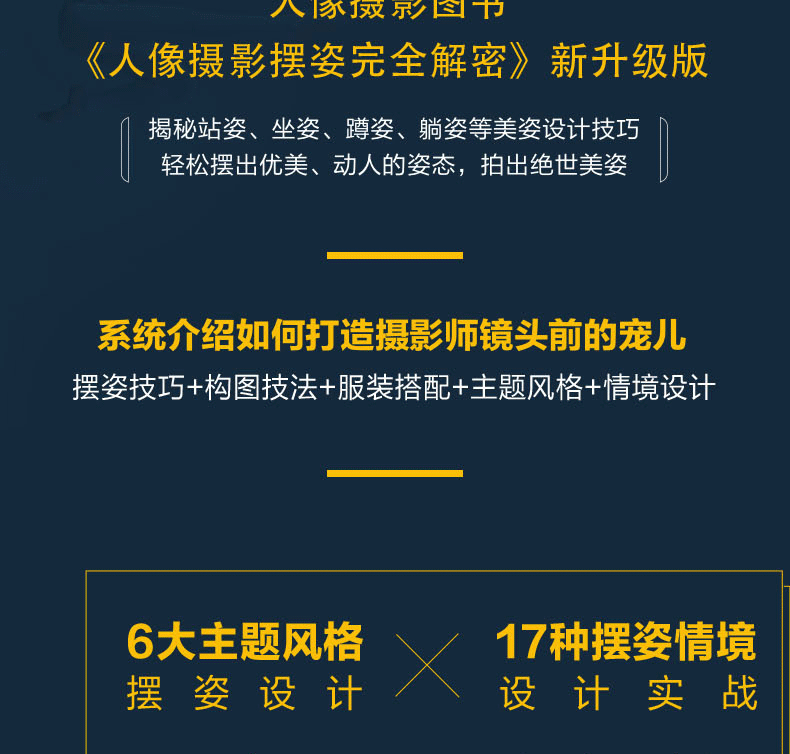站姿、坐姿、蹲姿、躺姿、趴姿、跪姿等美姿設計技巧講解。擺姿技巧+構圖技法+服裝搭配+主題風格+情境設計,系統介紹如何打造攝影師鏡頭前的寵兒。精選清新、復古、哥特、森系、動漫、時尚等六大主題風格的擺姿設計,以及海邊、公園、古建築等17種擺姿情境設計實戰,激發讀者的創作靈感。