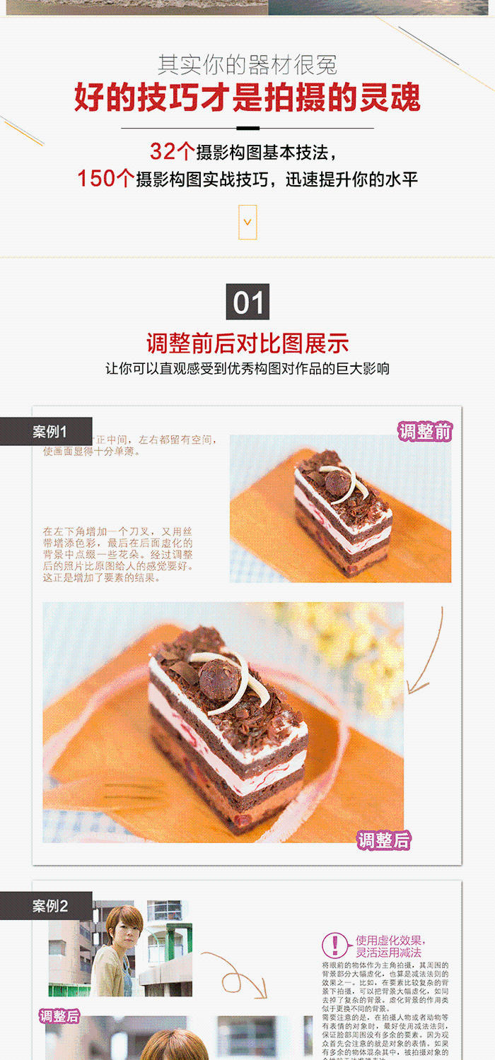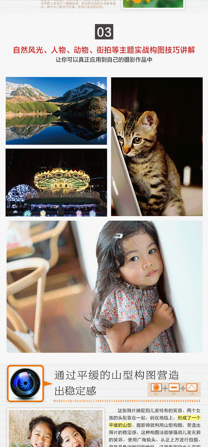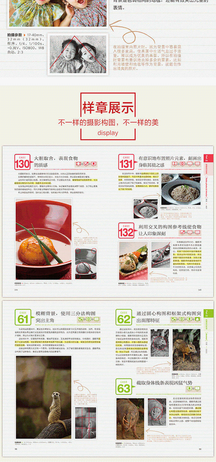 本書是眾多攝影專業人士的構圖經驗z結,通過引導讀者考慮構圖方式來挖掘其拍攝動機,並從相機的表現方法、構圖、活用案例這三個方面培養讀者的構圖意識,樹立個人的作品風格,拍攝出新穎、D特的照片。書中不僅介紹了常規的點、線、面、圖形等構圖元素,還講述瞭如何將各個元素融合運用以獲得絕美攝影作品的方法。除了基本技法的介紹外,書中還精選了風光、人像、街拍、動物、靜物領域的150個實戰案例,詳盡講述了構圖在不同場景和主題中的應用。本書適合攝影愛好者,尤其是在構圖方面遇到瓶頸的攝影愛好者參考閱讀,對於有一定經驗的攝影師,本書也同樣適用。