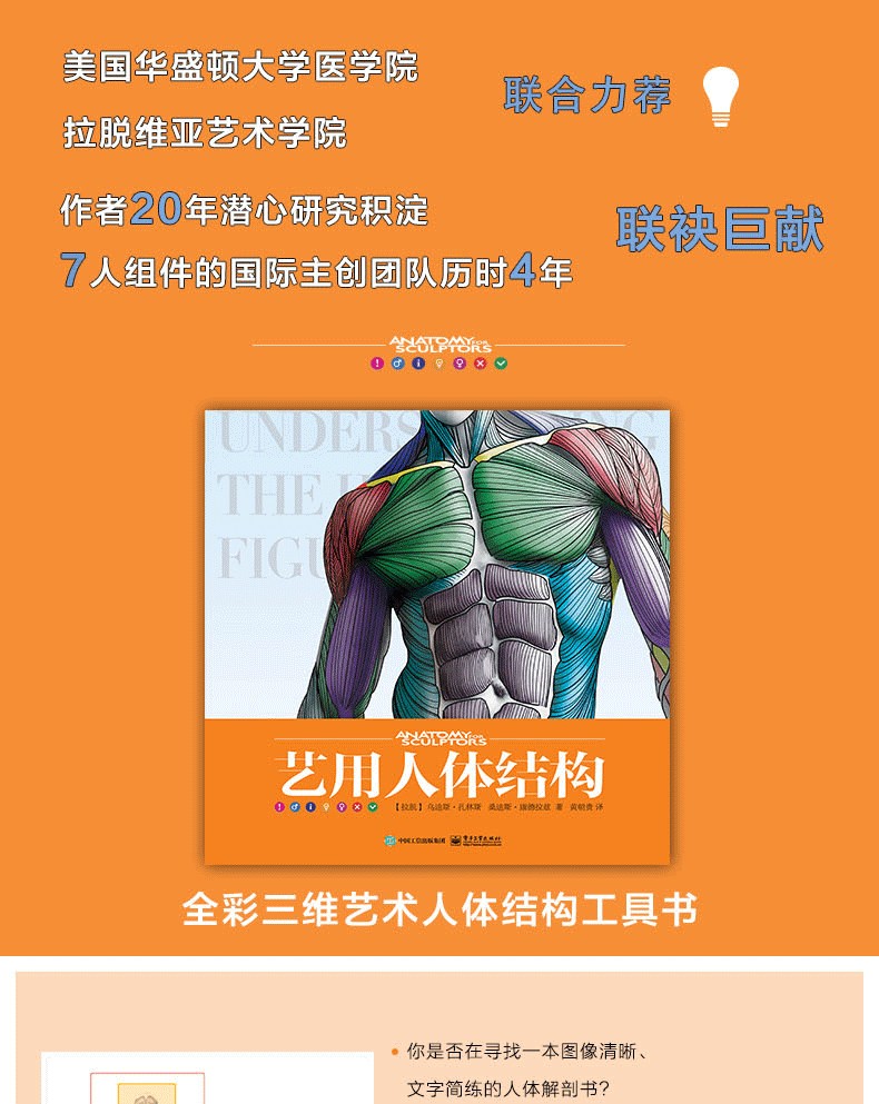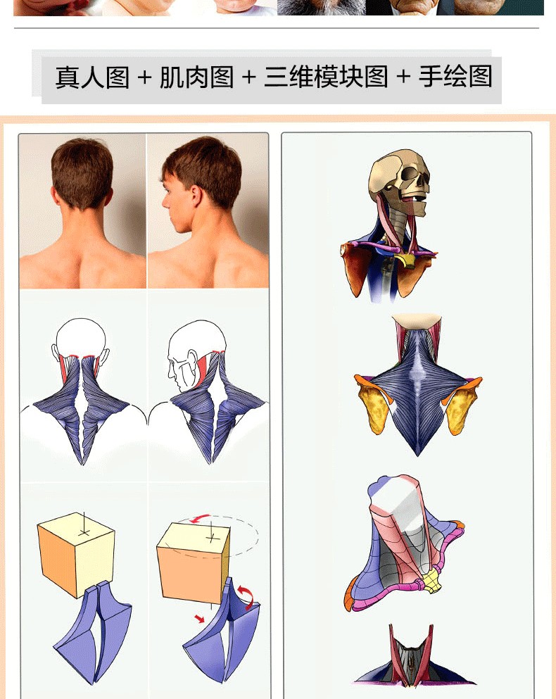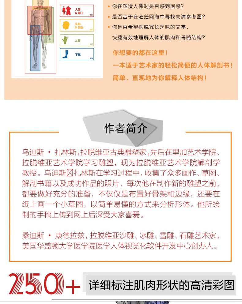 本書,依舊沿襲「圖解至上」的編寫理念,在以圖解為主的基礎上,為便於區分每塊肌肉與骨骼,作者特意使用不同顏色進行標記,並在必要時用三維效果來模擬。它不僅適合繪畫、雕塑和設計愛好者,也適合動畫專業人士。
