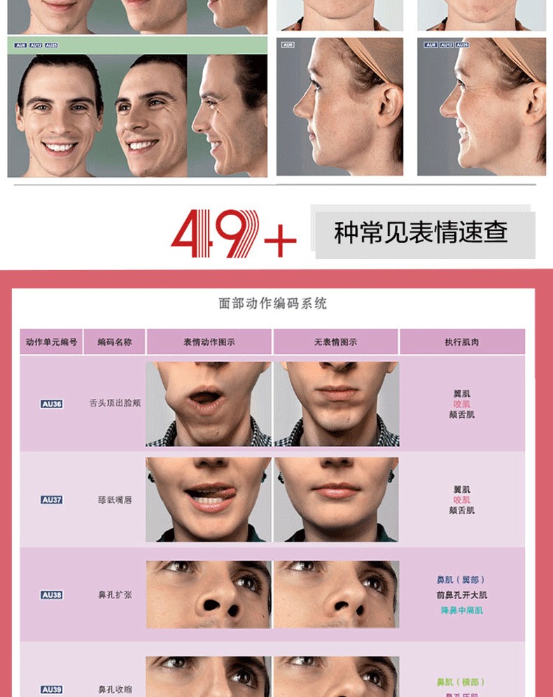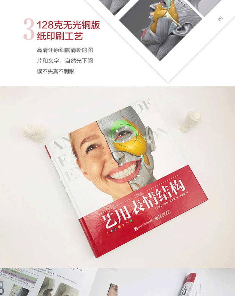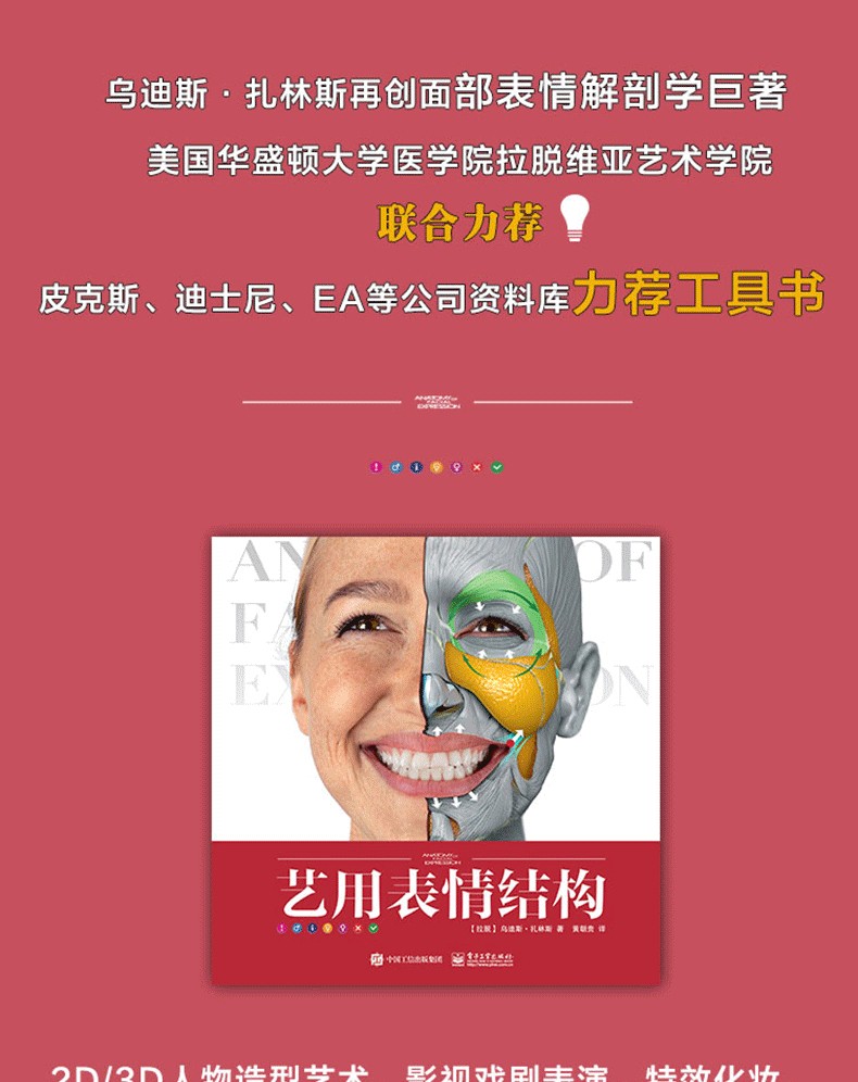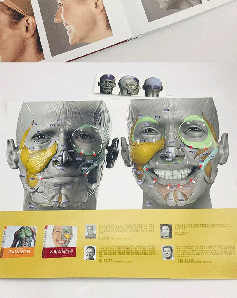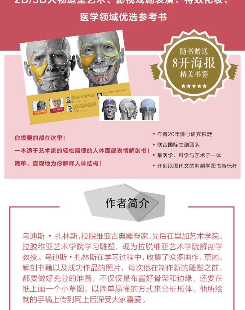 本書由拉脫維亞著名雕塑家烏迪斯?扎林斯(Uldis Zarins)聯合其國際創作團隊合力完成。書中對人物面部結構進行了細緻入微的講解,介紹了每塊骨骼和肌肉特徵,詳解肌肉運動對面部表情造成的影響,並採用了國際通用的面部動作編碼系統(FACS)將不同的表情歸類為相應動作單元,便於讀者直觀地了解面部表情的形成規律。