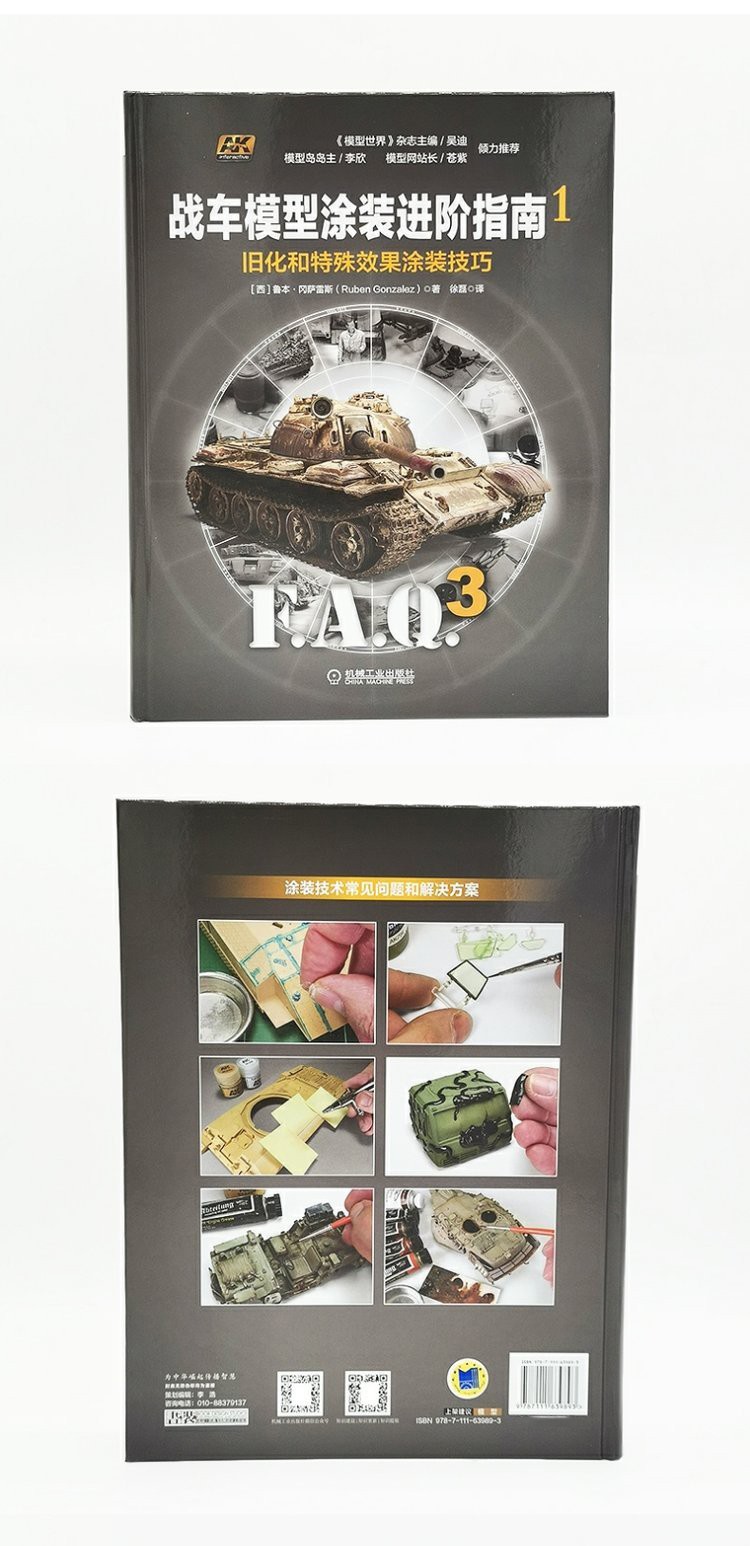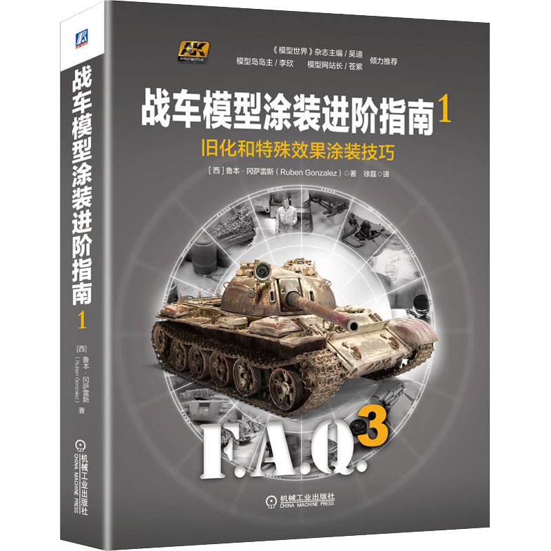 《戰車模型塗裝進階指南》(F.A.Q.3)是《坦克模型塗裝技術指南》(F.A.Q.2)的全新升級版,為熱愛戰車的模友提供系統、完整、精緻的塗裝技術教程。 《戰車模型塗裝進階指南1》主要突出舊化和特殊效果的處理技巧,包括組裝技巧、紋理和防滑塗層塗裝技巧、舊化技巧、基礎色和迷彩塗裝技巧、濾鏡、滲線和漬洗、磨損效果和褪色效果、掉漆效果、鏽蝕效果、塵土和泥漿效果、濕潤效果。對上述塗裝技巧的完美應用,將讓你得到一個屬於自己的作品。