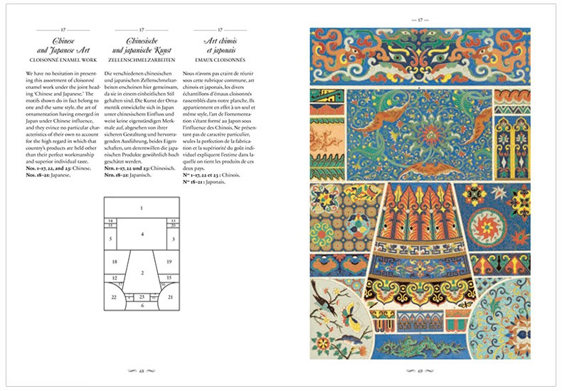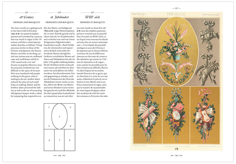 這部文化和美學彙編涵蓋了從中世紀到19 世紀的古典、埃及、希臘、羅馬、伊特魯裡亞、亞洲和中東以及歐洲設計,為藝術家、歷史學家、設計師和製版師提供了主要參考,任何從事裝飾設計和影響的人。
