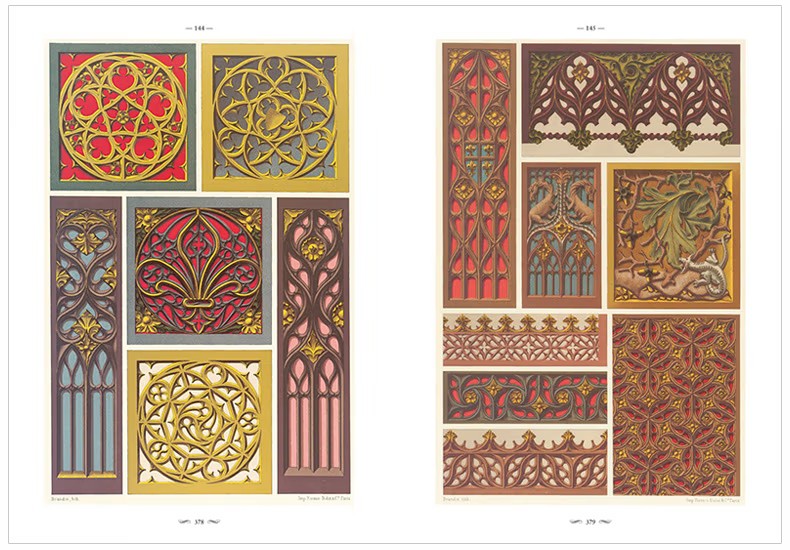 十九世紀:奧古斯特·拉西內 (Auguste Racinet) 的《裝飾多色》第一捲和第二卷以及奧古斯特·杜邦 (Auguste Dupont)