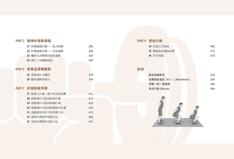 這是一本高度實用性的作品,將最新的科學研究轉化為一套簡單可行的健身計劃,讓我們可以達到健身目標。 --《原子習慣》作者 詹姆斯.克利爾
