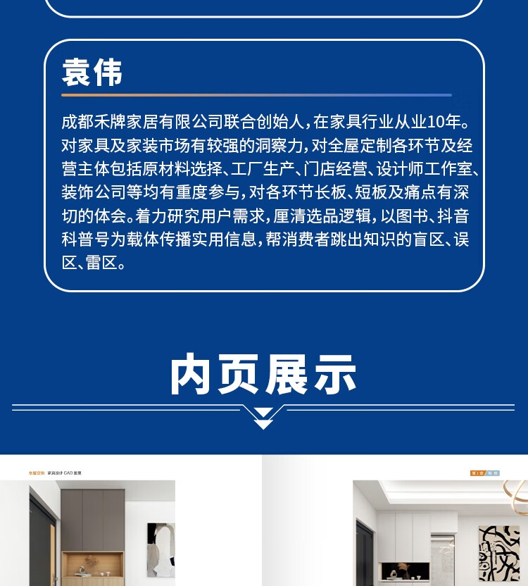 本書從實際出發,為裝修公司與設計工作室的設計師、從事定製家具設計工作的新人提供直覺的結構設計,從而填補設計師在定制行業歷練中可能存在的知識空白。並在為從業者提供所需知識和實用技能指南的同時,為消費者提供更詳細的了解定製家具的途徑。