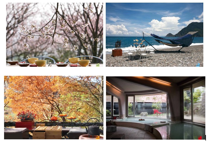 宜蘭花布、藍染花布、縫繡編,還有剪紙等藝術,分散於四季的攝影背景中。