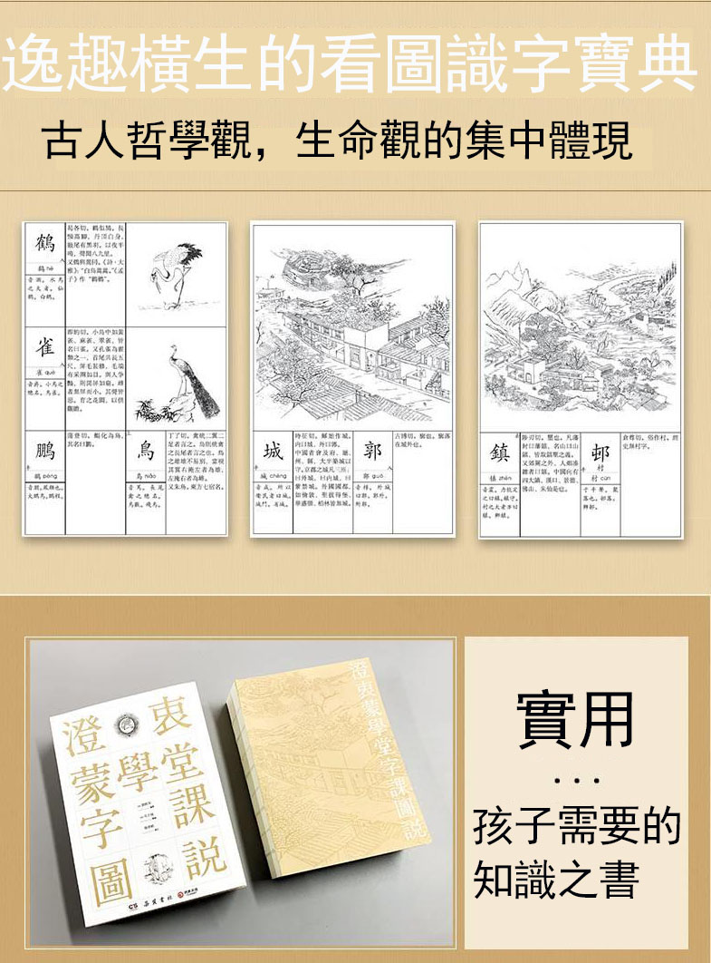 國學入門繞不開的繁體字工具書! 3310個常用字,七百六十餘幅清代畫匠繪圖,由淺入深、妙趣橫生,從圖像開始探索漢字的奧秘,旁徵博引、圖文並茂,涵蓋天文地理、鳥獸蟲魚、詩書禮儀、數理化學,帶你輕鬆有趣識繁用簡。